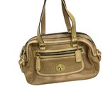 Coach Tan Leather Satchel Bag With Multiple Compartments & Gold Hardware