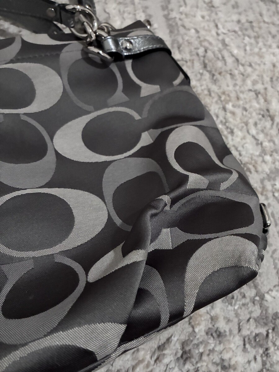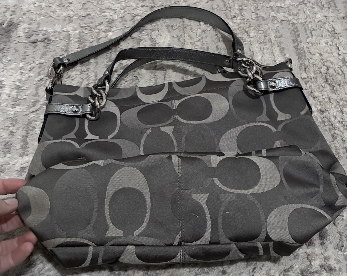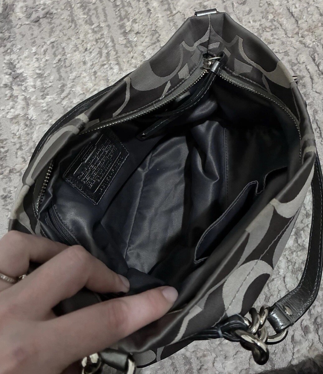Coach Y2K Brooke Sateen Silver C Signature Leather Canvas Shoulder Bag 2000s