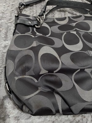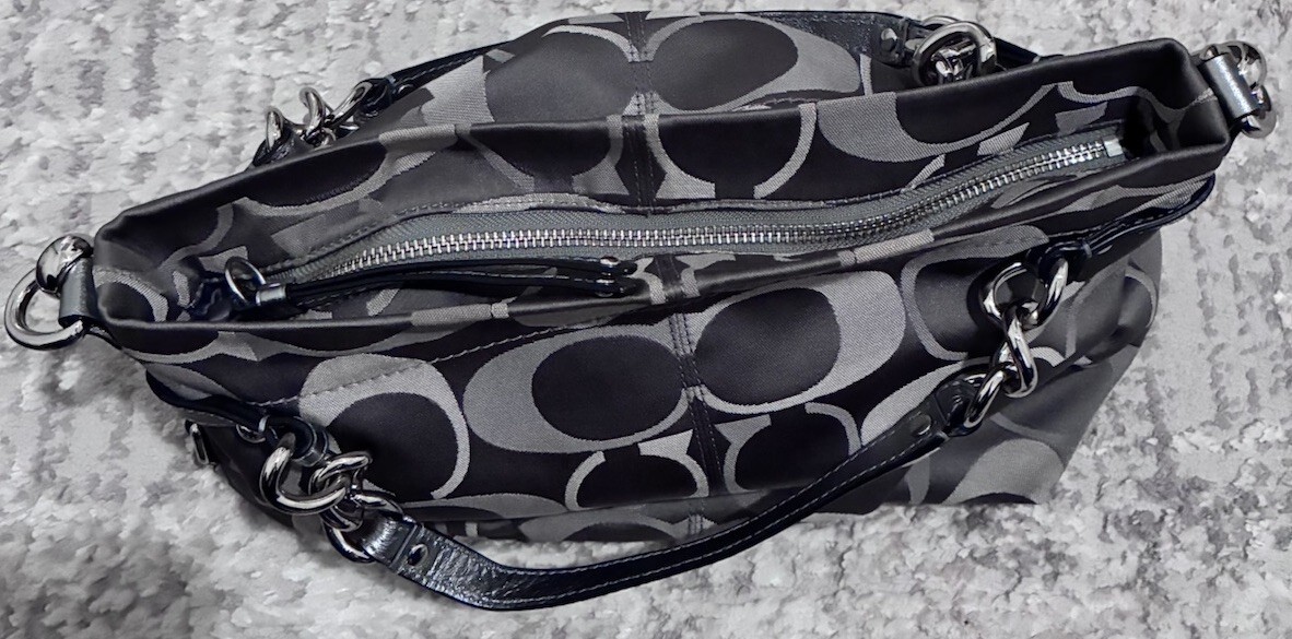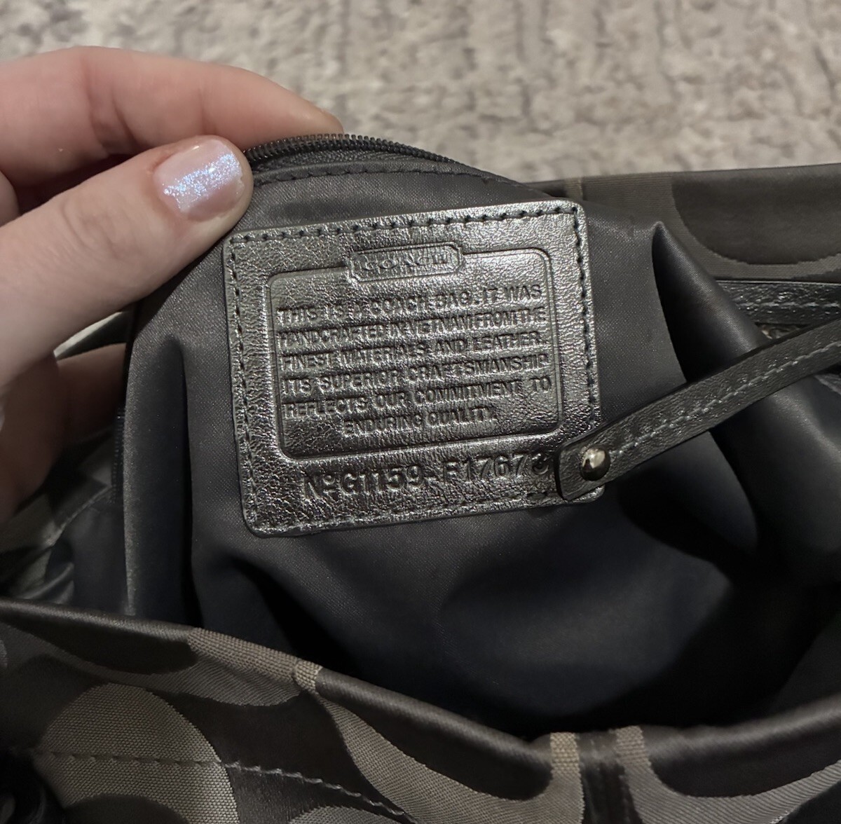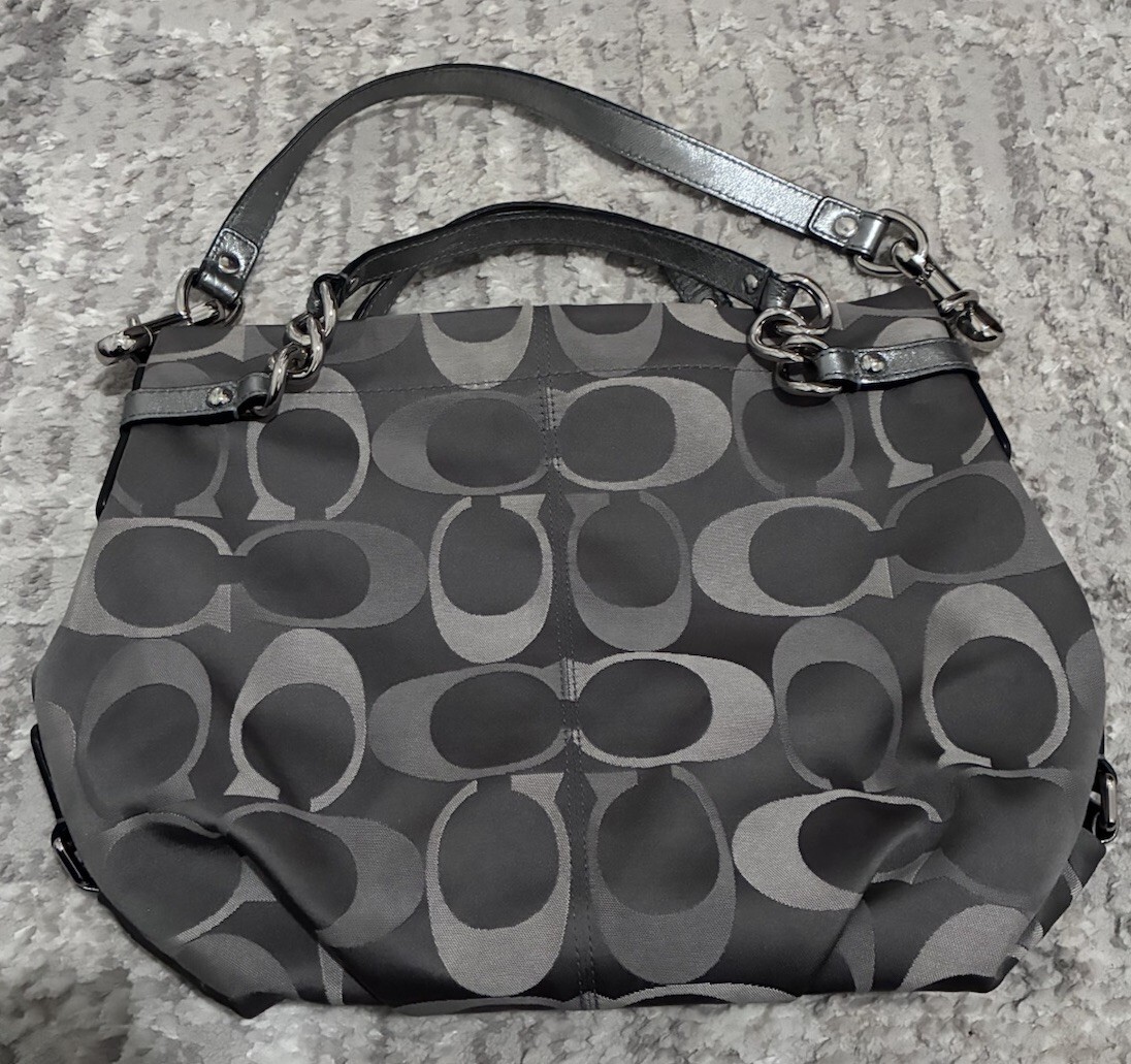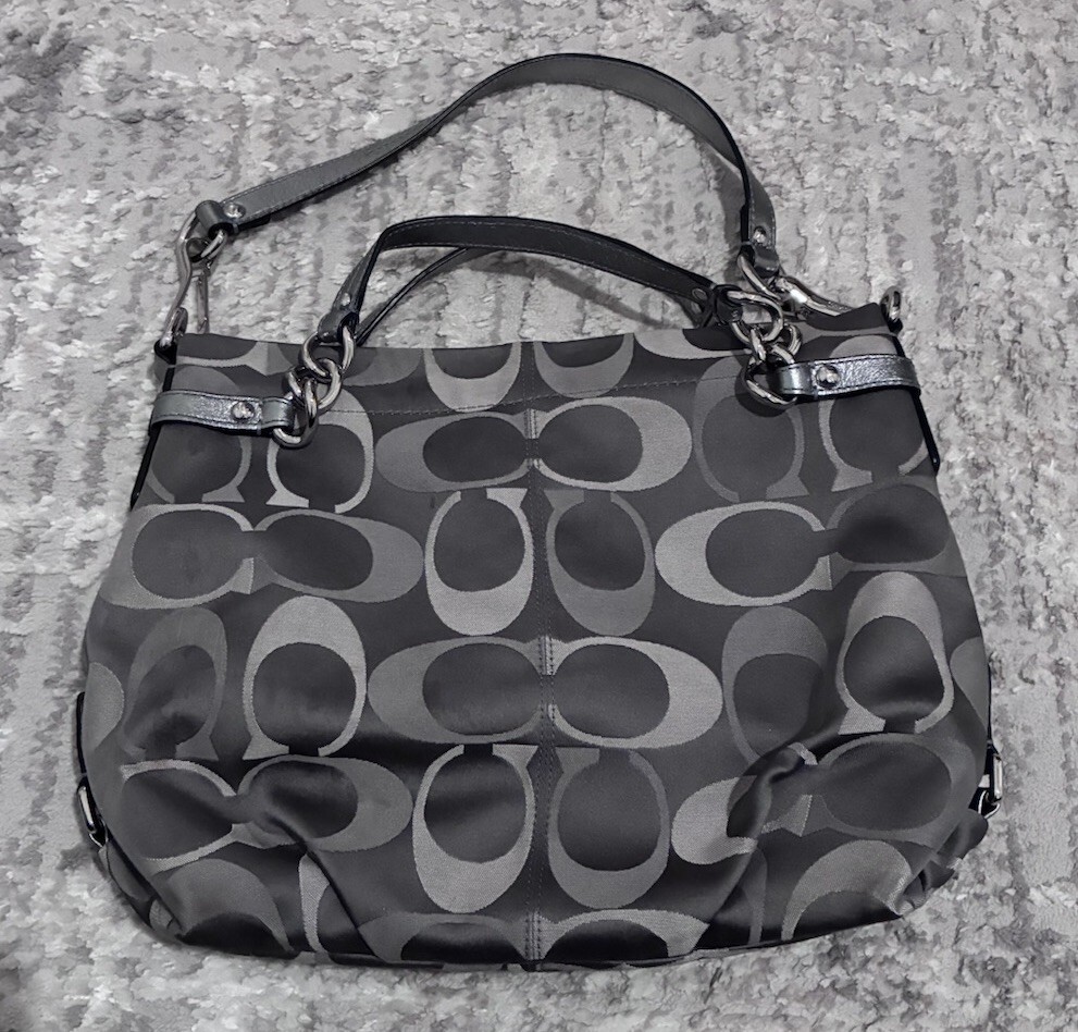 Coach Y2K Brooke Sateen Silver C Signature Leather Canvas Shoulder Bag 2000s