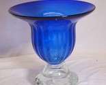 Cobalt Blue Glass Fruit Bowl Ribbed Sides Clear Base