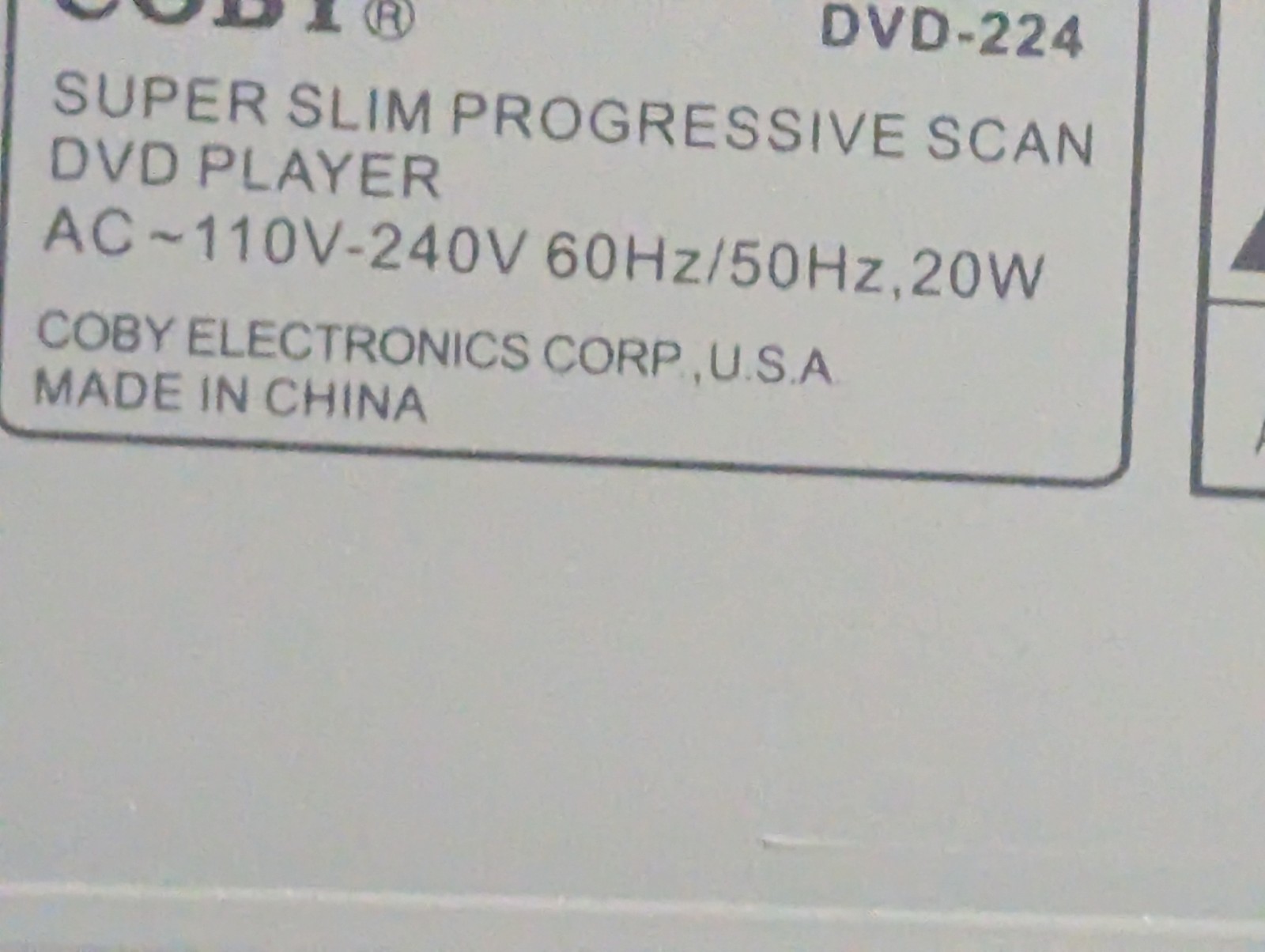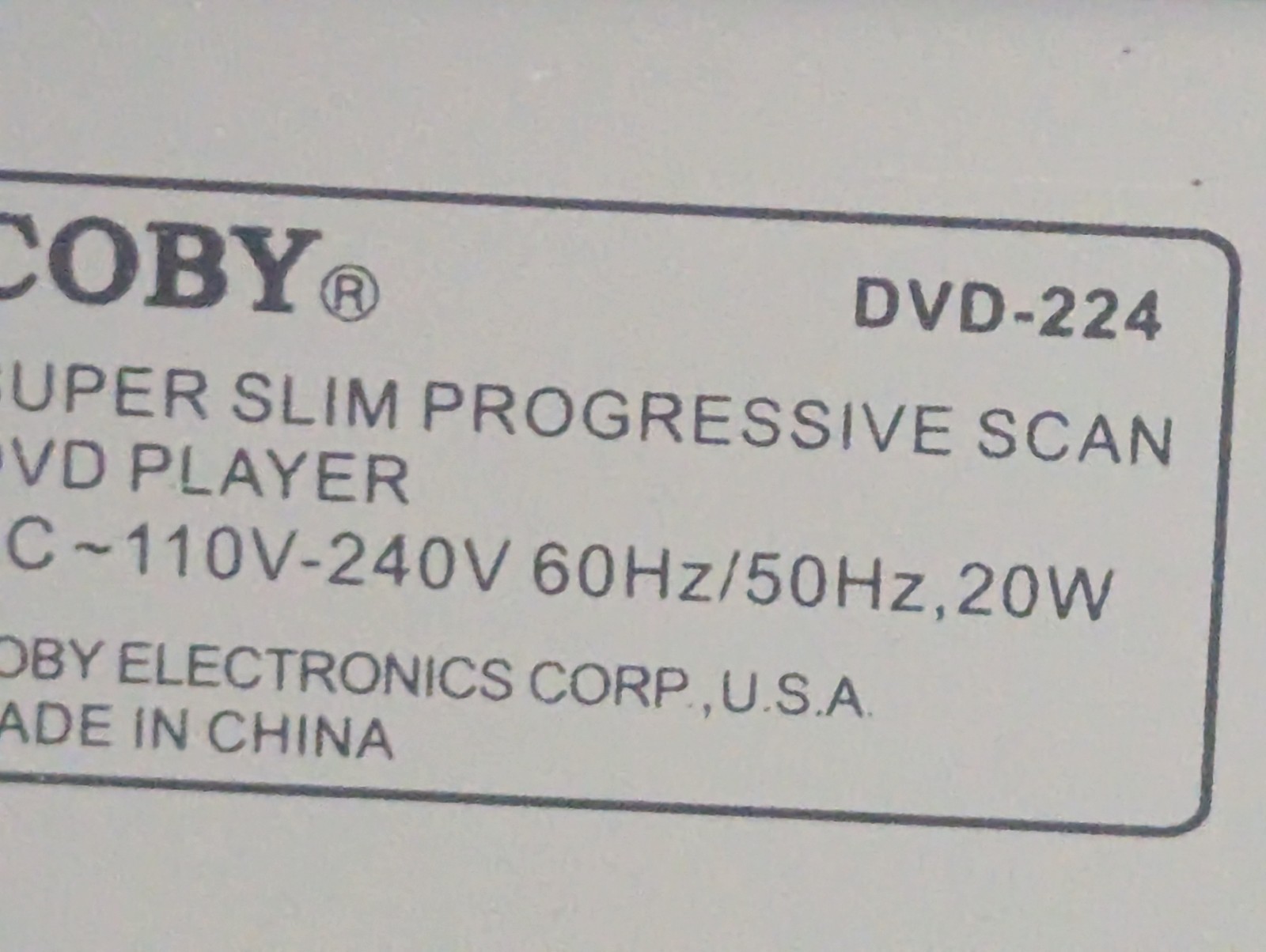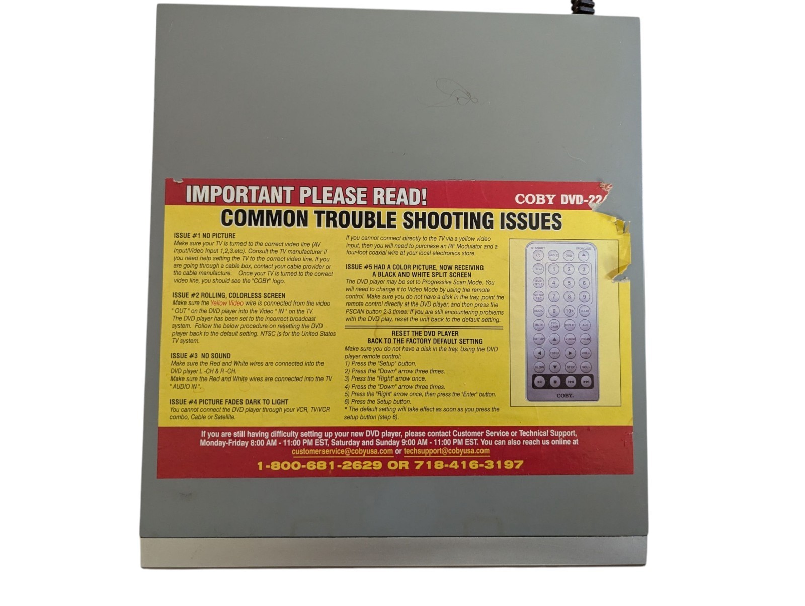- Coby DVD-224 Slim DVD Player Progressive Scan No Remote Or Cables CD/CDR/CDRW