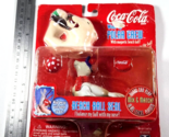 This Coca-Cola wind-up toy from 1998 features a playful polar bear and seal balancing a beach ball, part of the Polar Crew promotional collection. A charming piece for collectors of vintage Coke memorabilia or nostalgic holiday decor.
