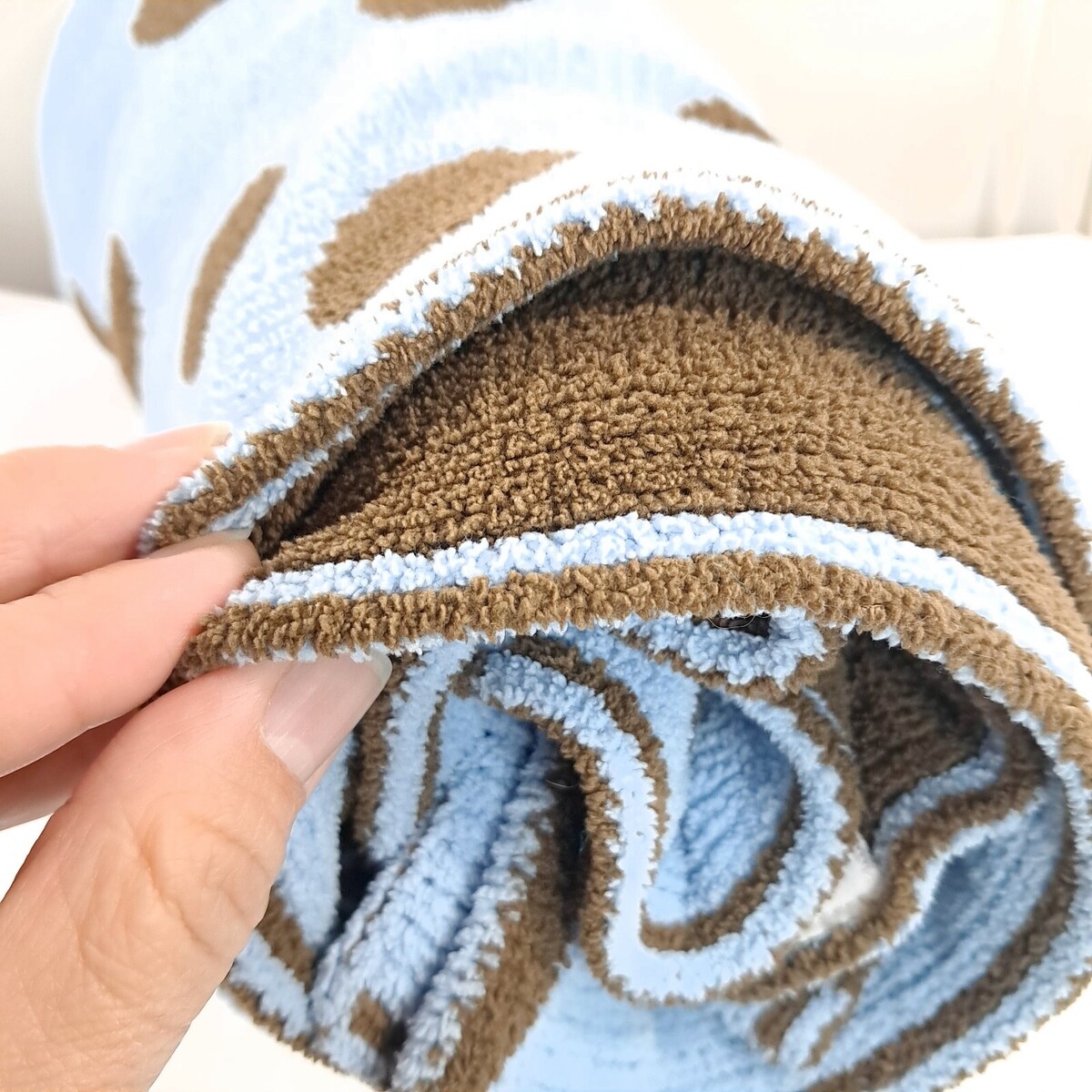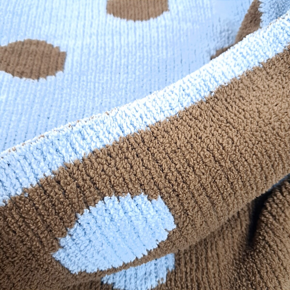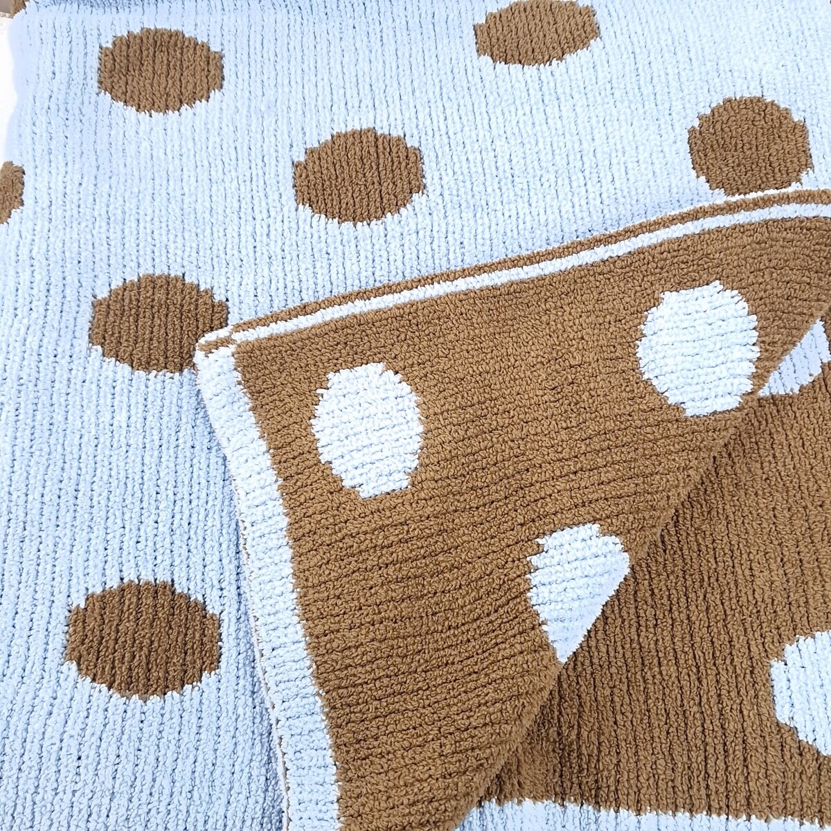 - Cocalo Baby Blanket Blue Brown Polka Dot Chenille Plush sweater Knit Reversible
