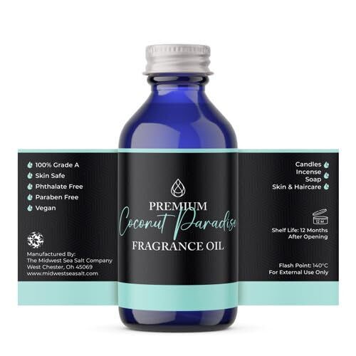Transform your ambiance with Coconut Paradise Fragrance Oil from The Midwest Sea Salt Company. Enjoy the tropical blend of creamy coconut, peaches, and vanilla for refreshing serenity.