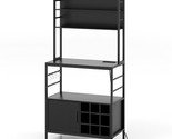 - Coffee Bar Cabinet with S-Shaped Hooks and Wine Bottle Holders-Black - Color: Bl