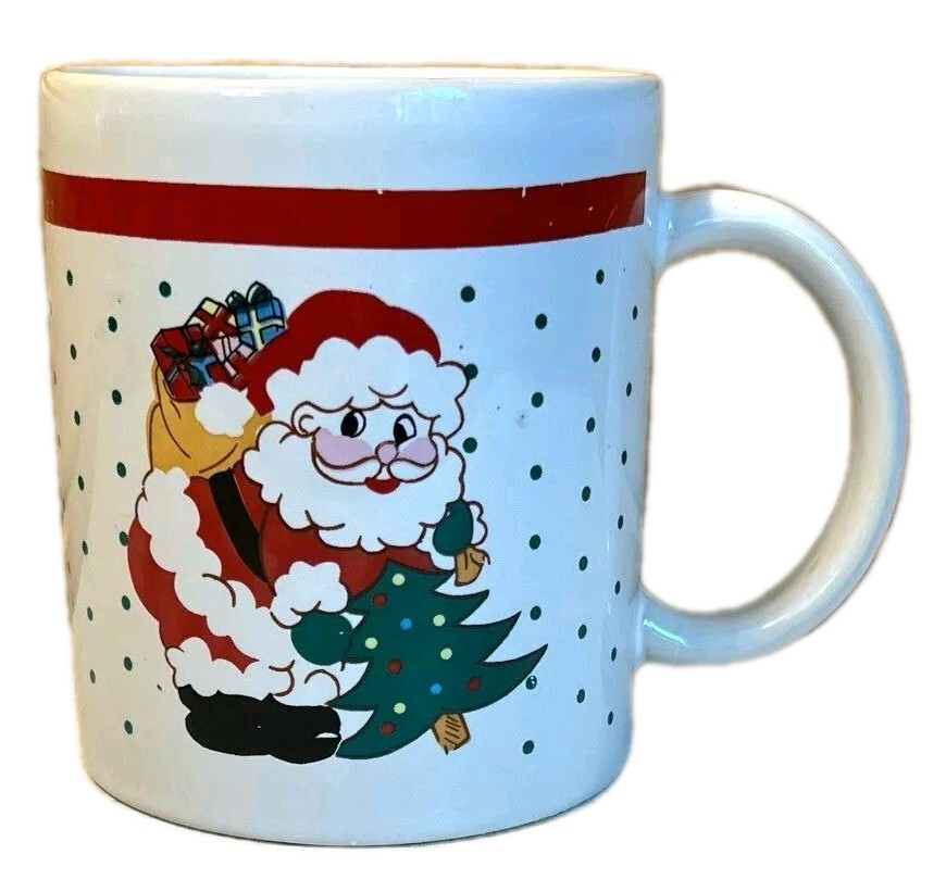 - Coffee Mug Christmas Holiday Santa Clause Toy Bag Xmas Tree Vintage 8 oz Cup HGS