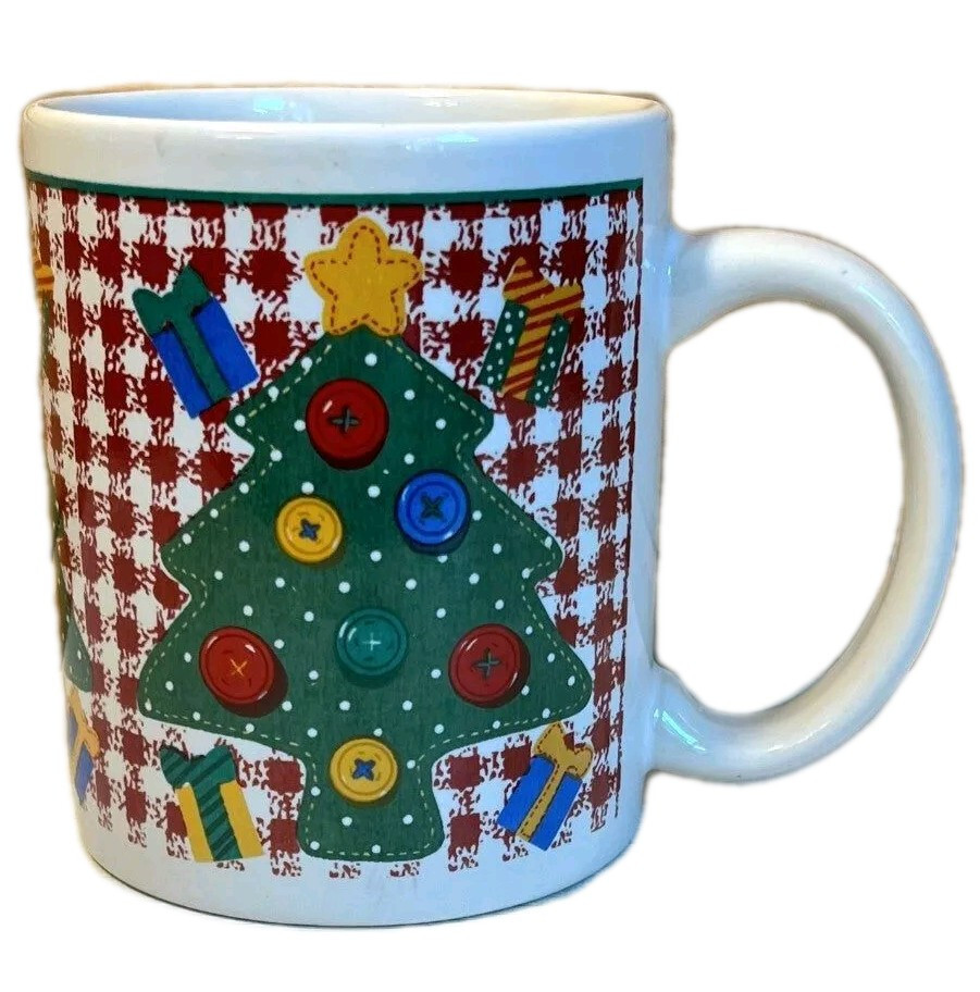 - Coffee Mug Christmas Tree Checkered Holiday Vintage 8 oz Cup HGS