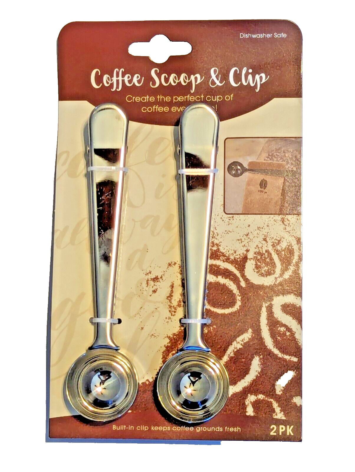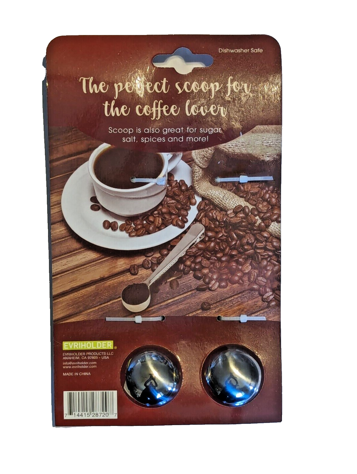 - Coffee Scoop and Sealing Bag Clip 2-Piece Stainless Steel Silver Color NIP
