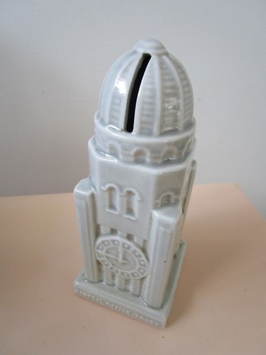 COIN BANK ADVERTISING WILLIAMSBURCH BANK CHATTAN NJ [*126BSKTRIGHTRACK2] 7 1/2" VERY GOOD CONDITION, SOME LIGHT SURFACE SCRATCHES COMMENSURATE WITH AGE