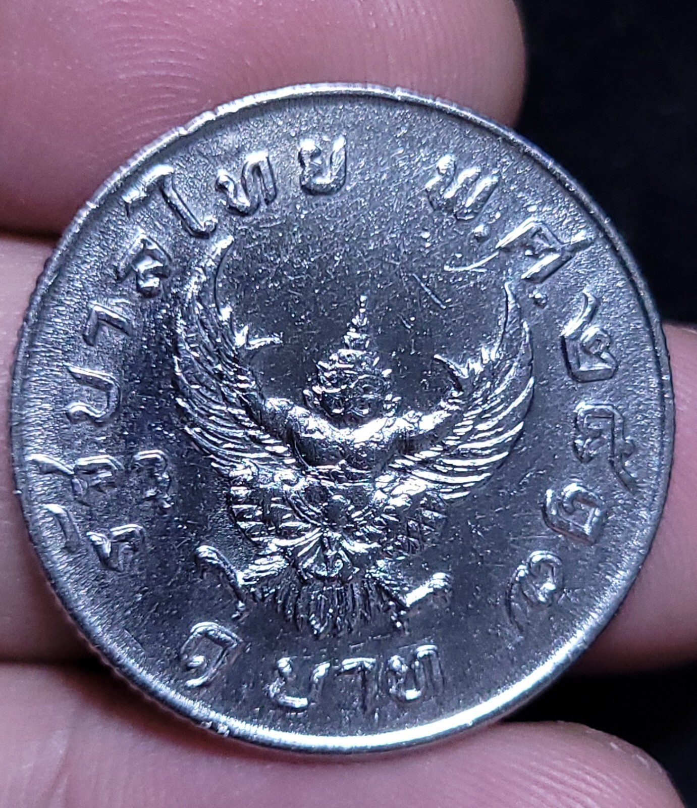- Coin King Bhumibol Rama 9th (back garuda)b.e 2517 Thai Baht coin holy rare.