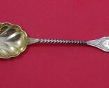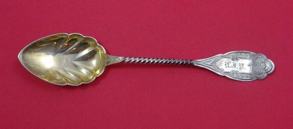 Coin Silver by Hotchkiss and Schreuder coin silver twisted handle Ice Cream Spoon Gold Washed Fluted Bright-Cut, 6". It is monogrammed (monos vary) and is in excellent condition.