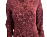 Coldwater Creek Burgundy Lined Tapestry Jacket LS Mandarin Collare Size M