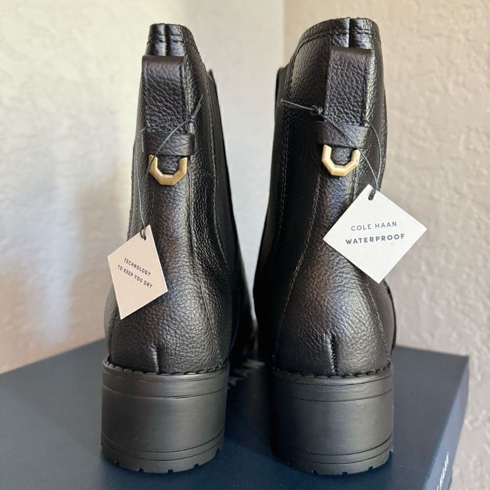 - Cole Haan Camea Waterproof Leather Combat Boot, Block Heel Black, Size 8.5 NWT