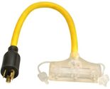 Coleman Cable 90848802 Generator Power Cord Adapter, 12/3 Splitter 3-way Adapter, L5-20P to (3) Lighted 5-15R, 2-Foot,Yellow
