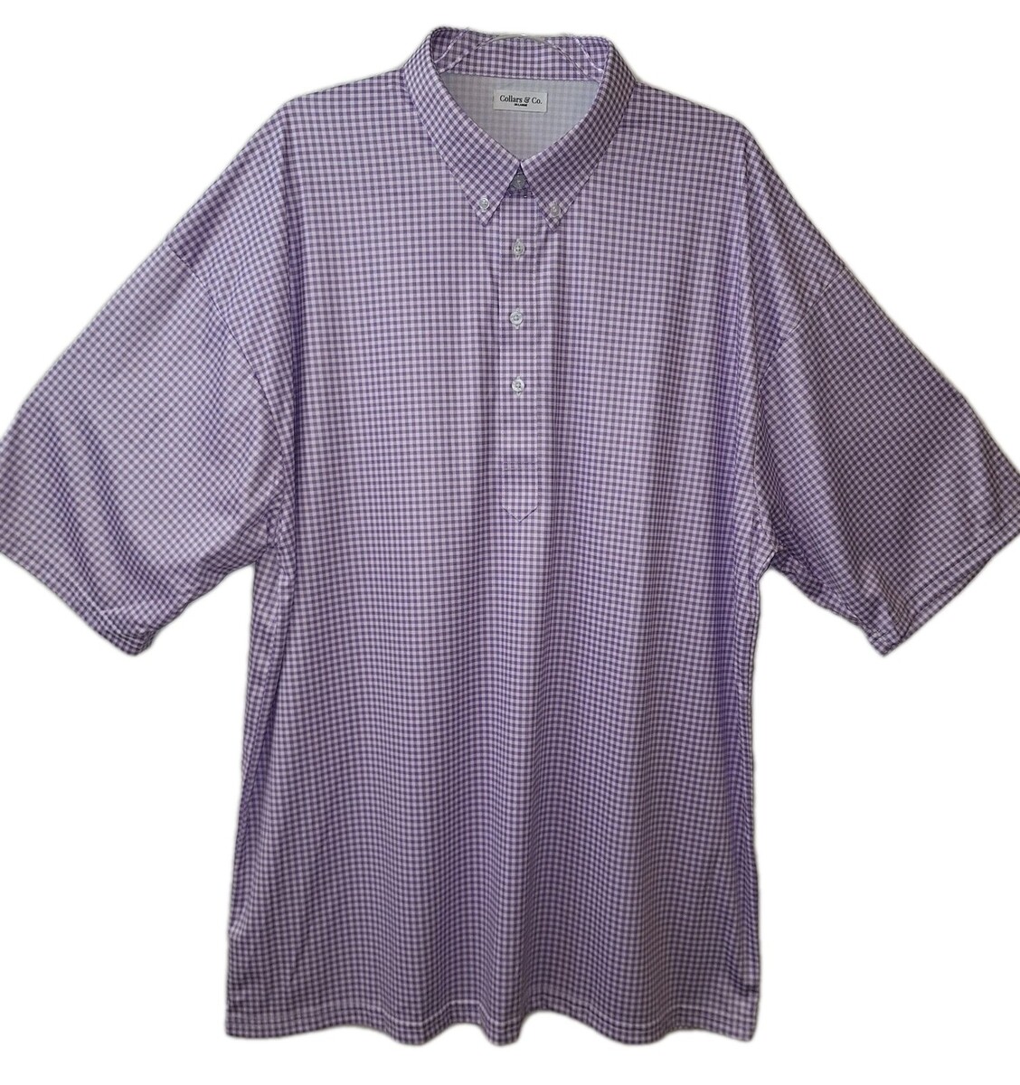 - Collars & Co Mens Dress Collar Polo Sz 3XL Purple White Gingham Golf NWOT