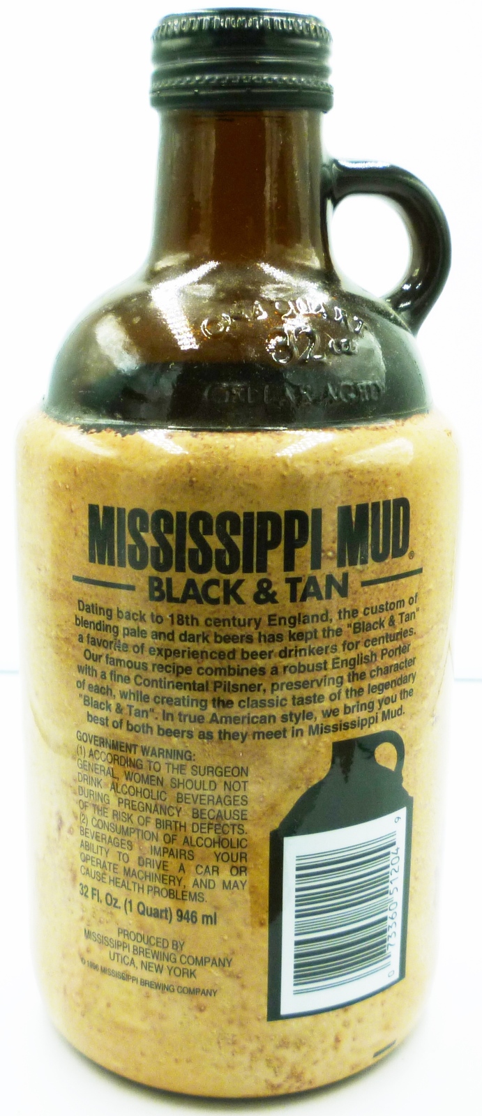 - COLLECTIBLE GLASS BEER 1Q BOTTLE MISSISSIPPI MUD BLACK & TAN BEER