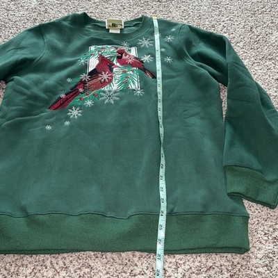 - Collections Etc. Womens L Green Cardinal Bird Snowflake Christmas Sweatshirt