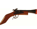 COLONIAL DOUBLE PERCUSSION CLASSIC WOODEN TOY PIRATE CAP FIRING PISTOL Material: Wooden stock, plastic orange barrel diecast metal action Approx. Measurement: 10" long Feature: Can fire single caps.