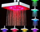 6 Inch Square 7 Colors Changing LED Shower Head Bathroom Rainfall Spray Heads