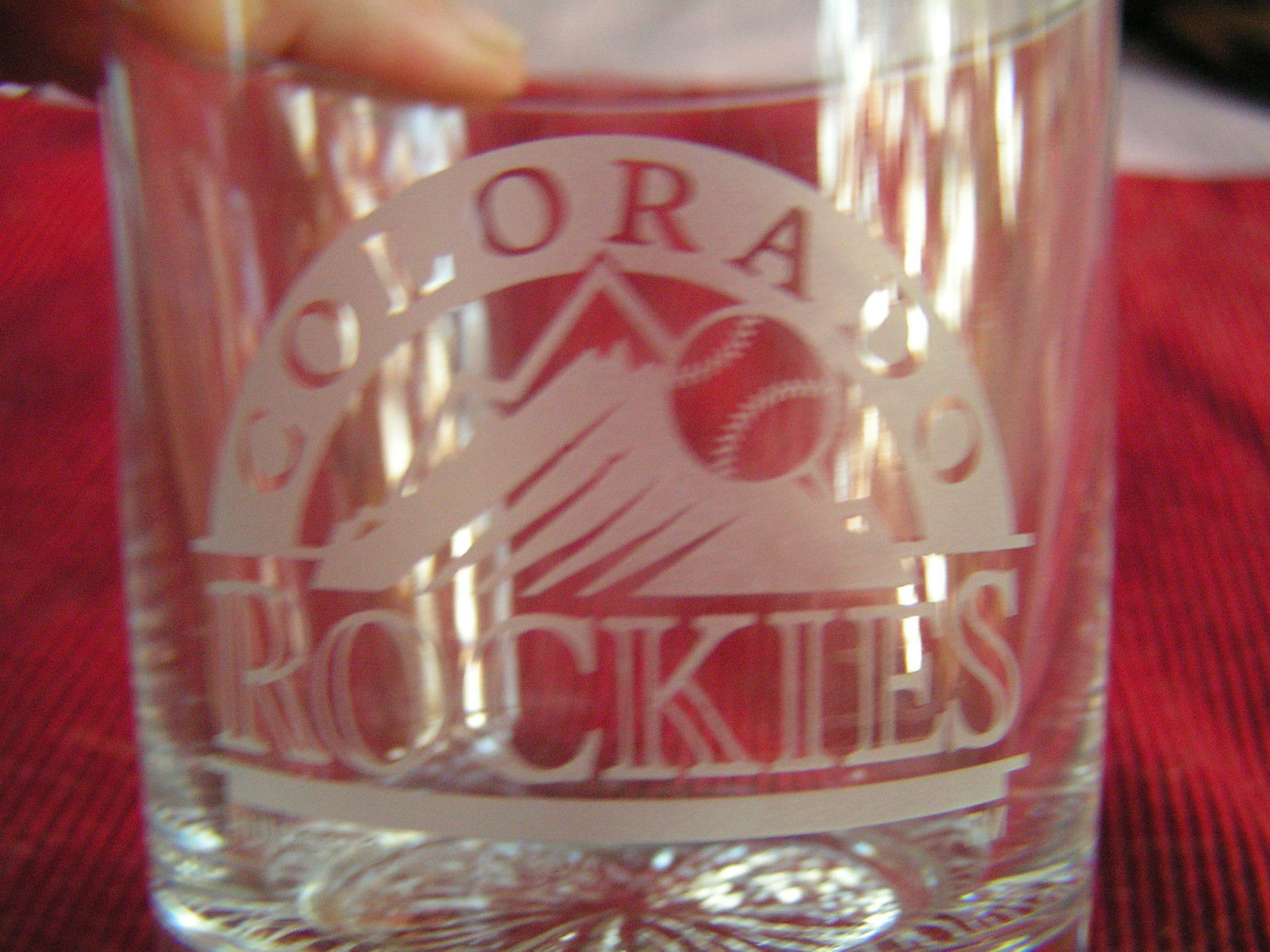 - Colorado Rockies Bar "Rocks" Etched Hunter Bar Glass 1994