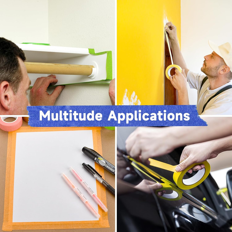 ?Premium Material?: Our masking tapes make of premium textured paper and natural rubber adhesive, safe and reliable, the material of the masking tape is paper, can be easily torn and adhere very well, remove easily and cleanly. High performance painter's tape paint tape for walls.