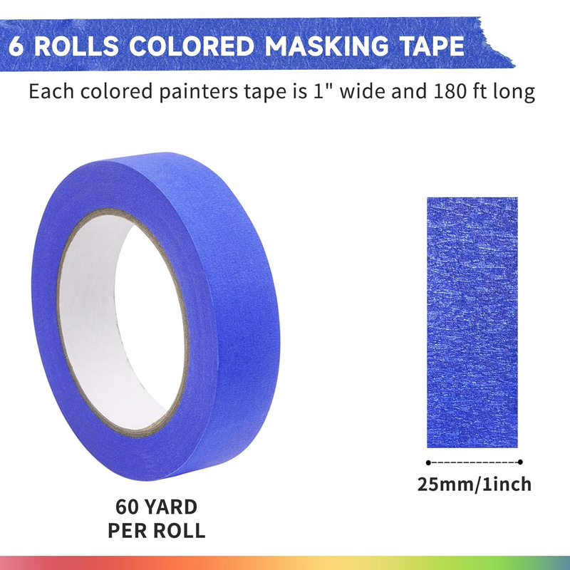 - Colored Masking Tape - 6 Large Rolls - 60Yds X 1 Inch of Each Colorful Craft Tap
