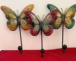 - Colorful Metal Wall Hooks 3 Butterflies w Glitter Wings 15.5" Unmarked