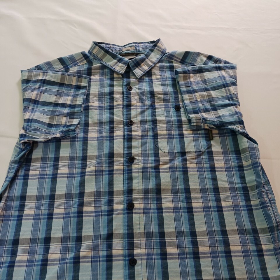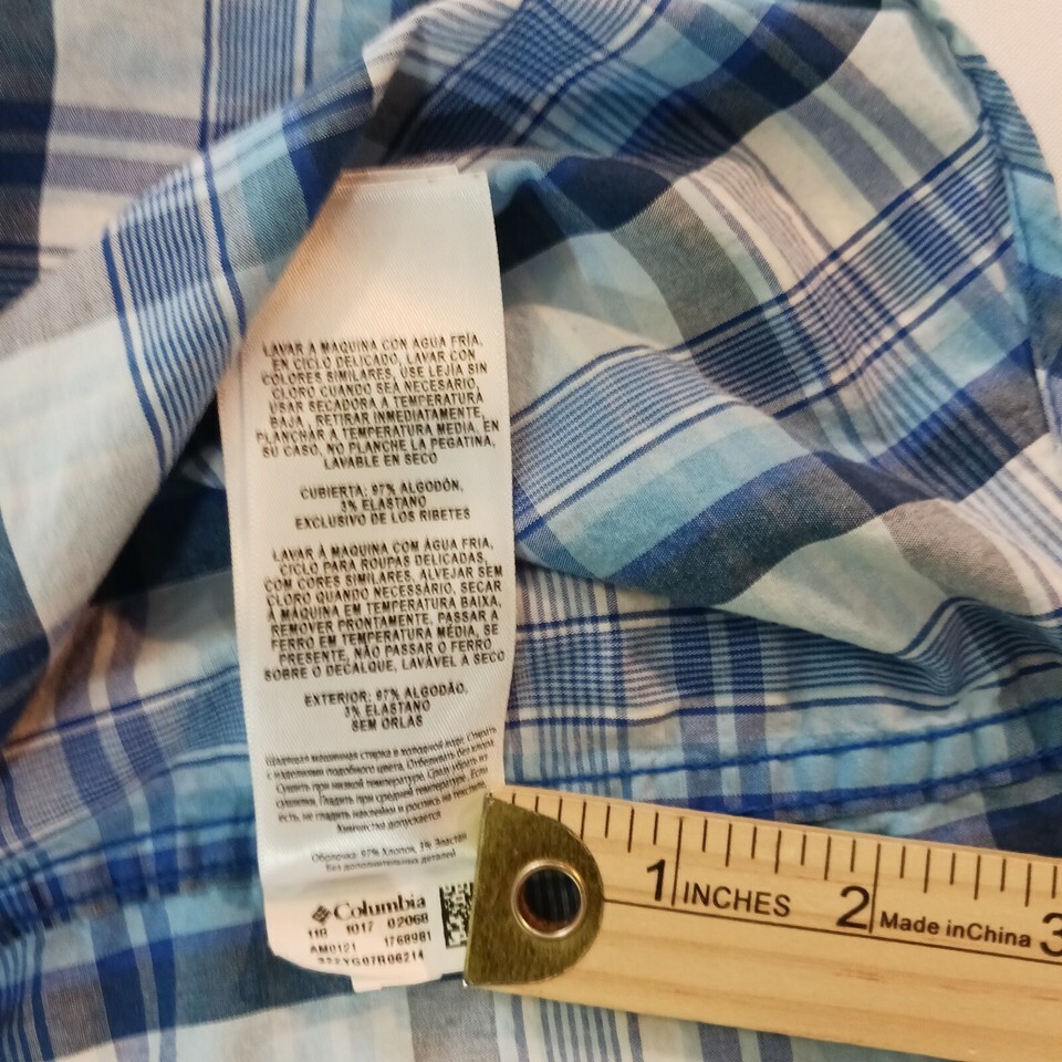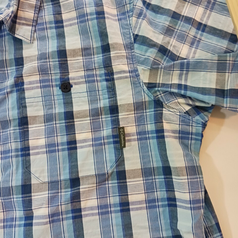 - Columbia Regular Fit Men L Blue Cotton Blend Plaid Button Up Shirt Short Sleeve