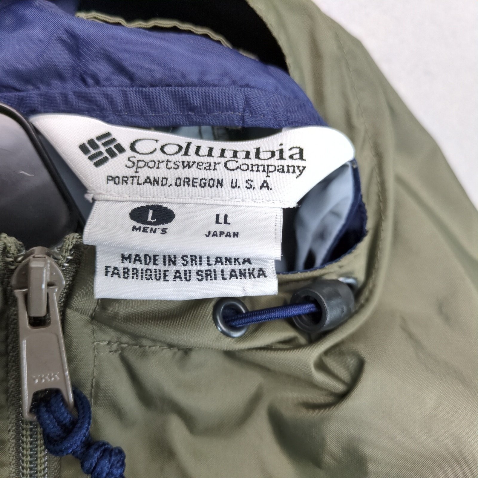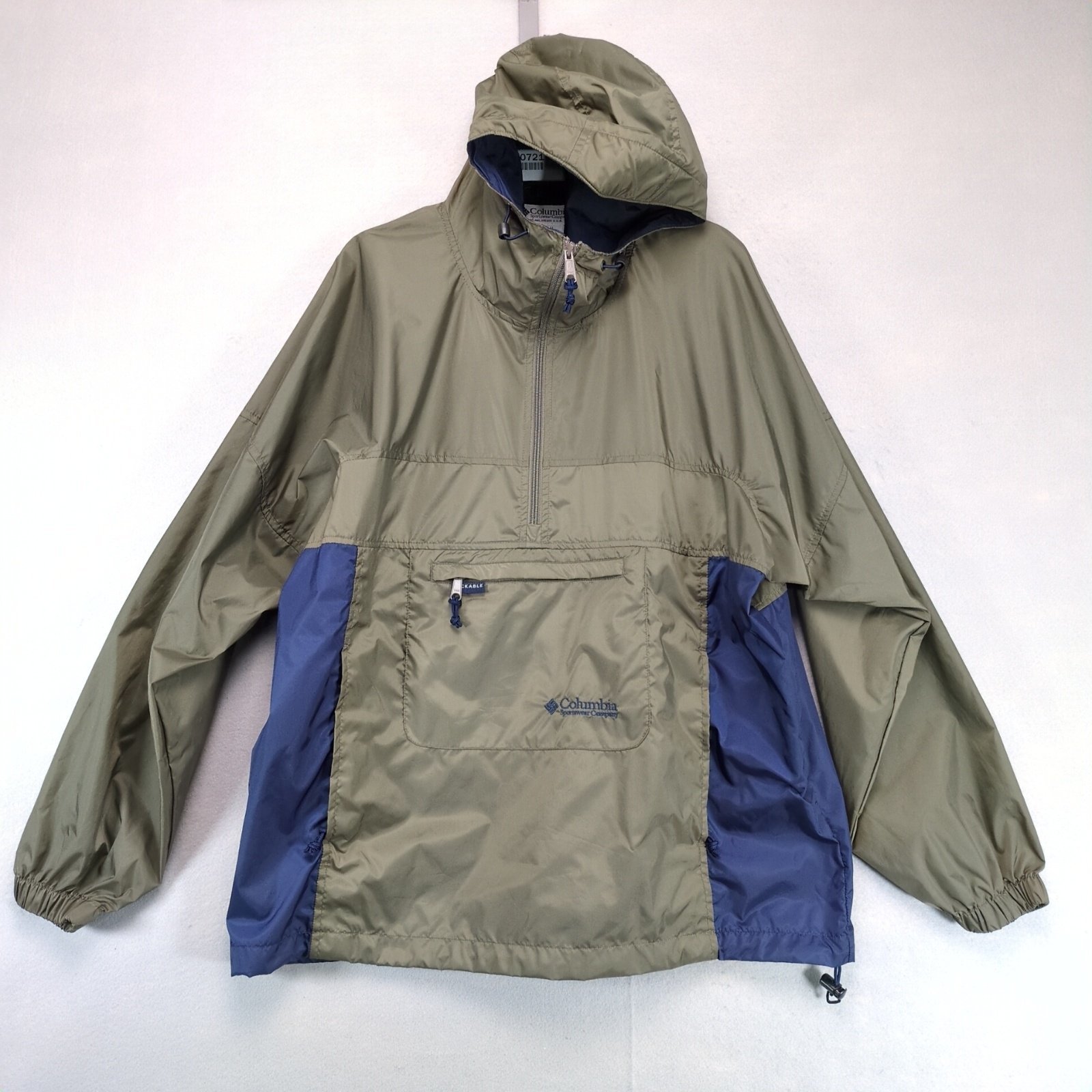 - Columbia Sportswear 1/2 Zip Windbreaker Jacket Men's L Hood Packable Olive Navy