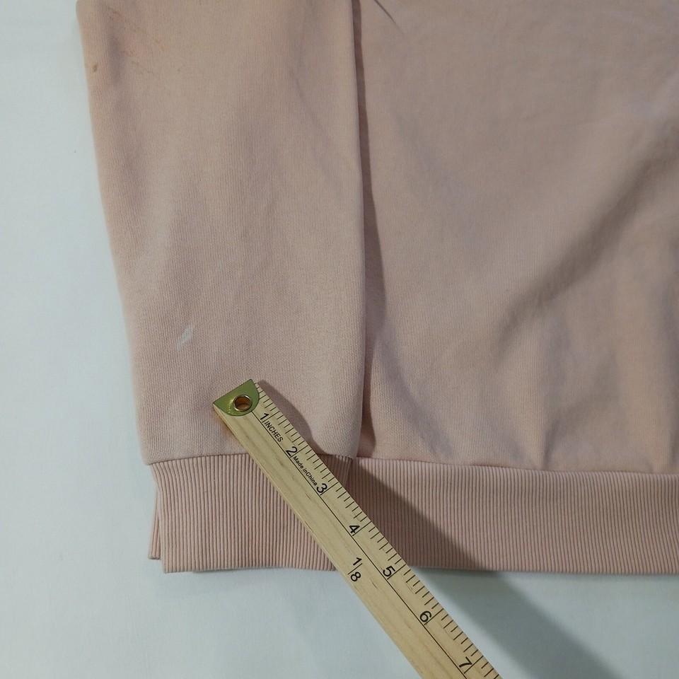 Made from a blend of polyester, cotton, and cotton blend fabrics, this sweater is lightweight and machine washable for easy care. The peach color with a logo accent adds a touch of style to any outfit. This sweater is available in size L and is a regular fit for women.