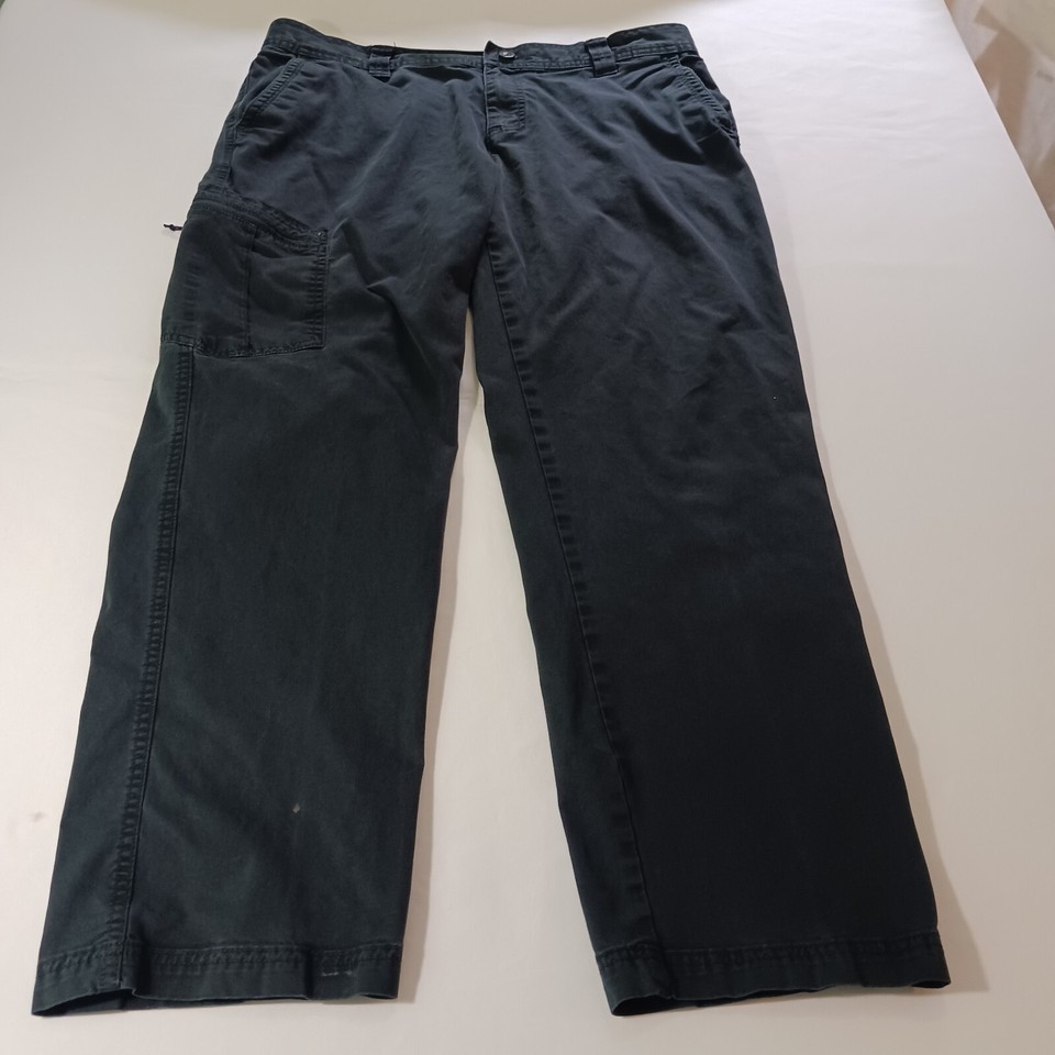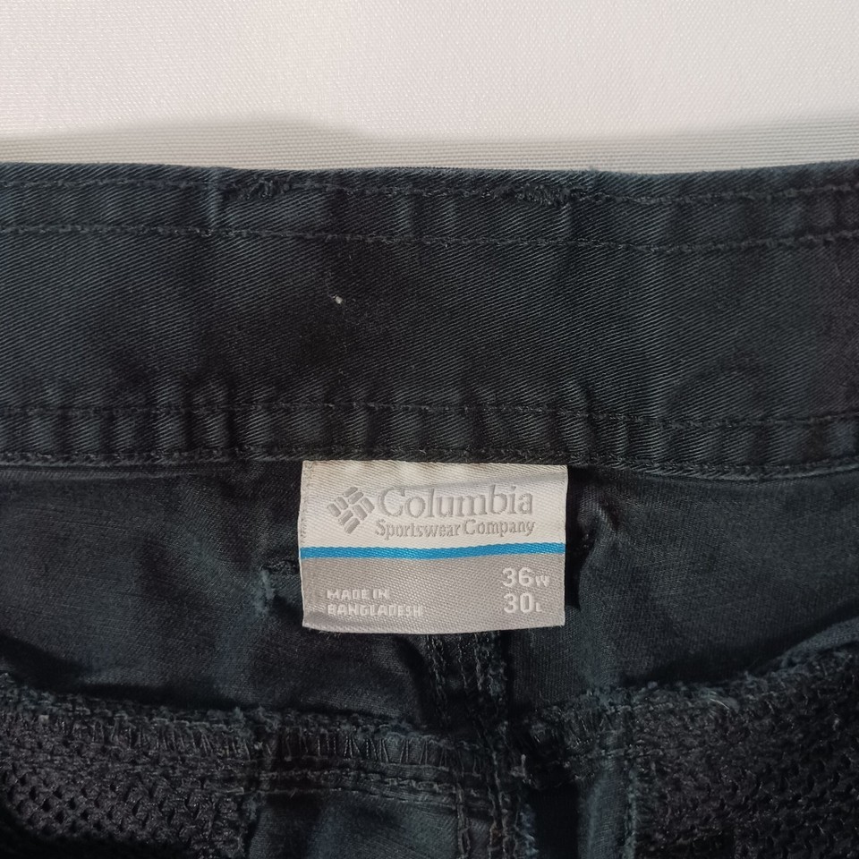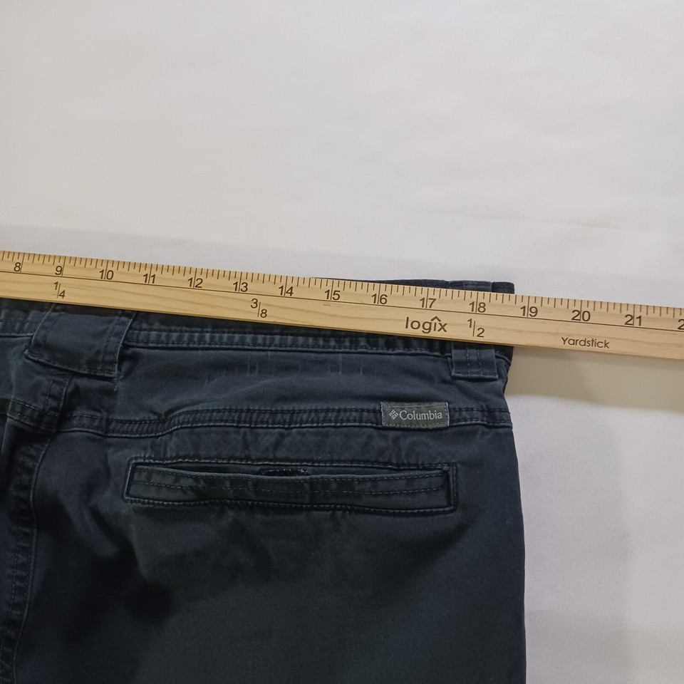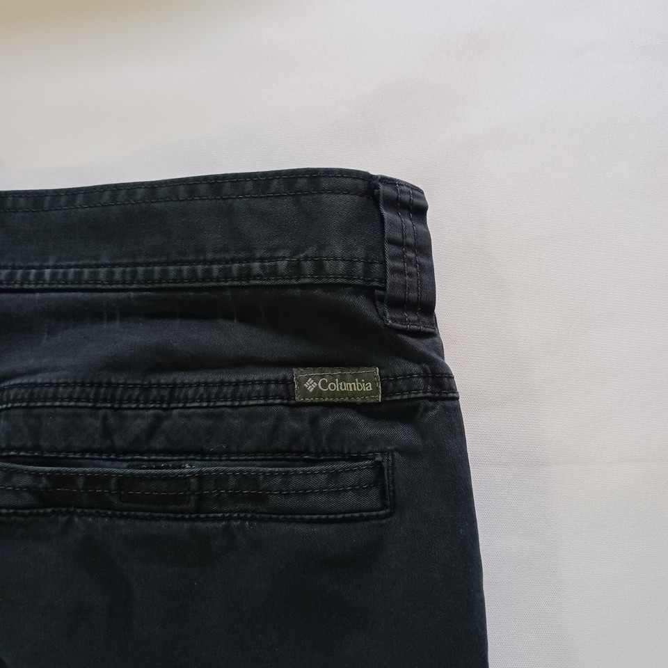 These Columbia XM1269 cargo pants are the perfect addition to any outdoor or casual outfit. The pants feature a zip closure and a flat front, with a tapered leg style and a waist size of 36 inches. The fabric is a blend of spandex and cotton, with a solid pattern and black color.