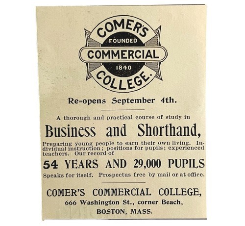 - Comer's Commercial College 1894 Advertisement Victorian Boston Mass 3 ADBN1jj