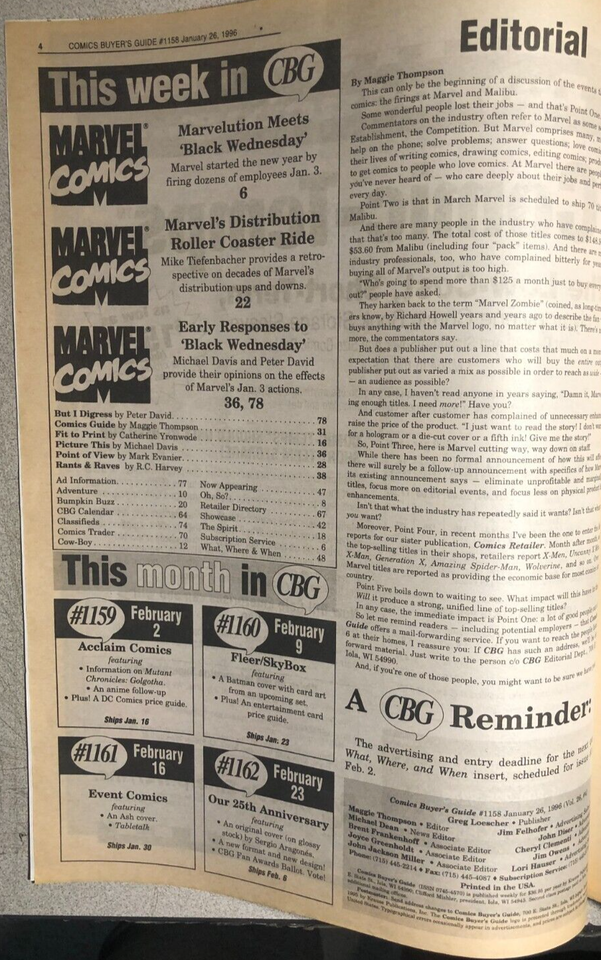 - COMICS BUYER'S GUIDE #1158 January 26, 1996 VG+