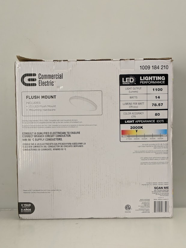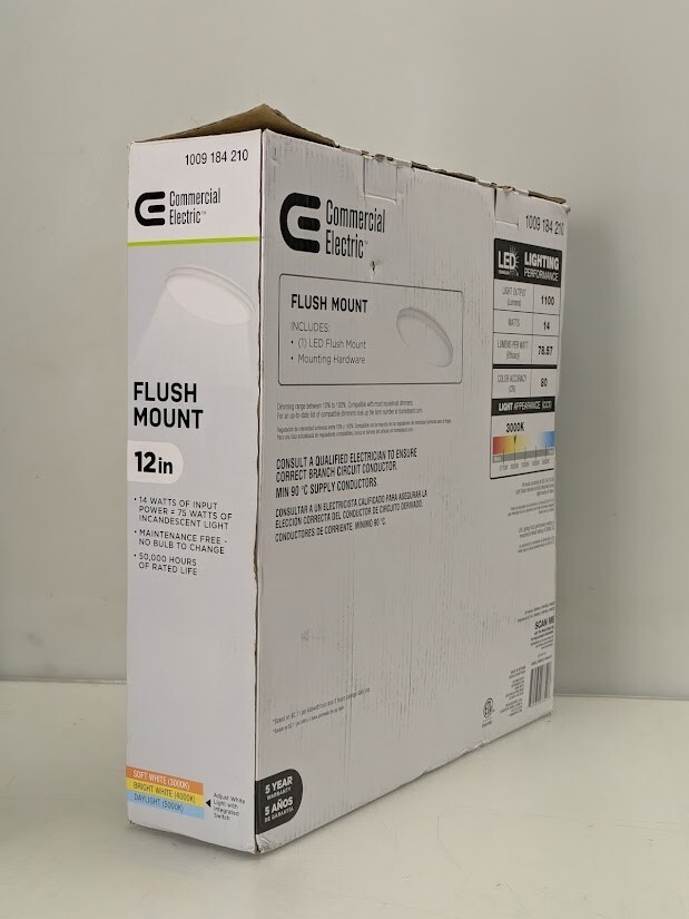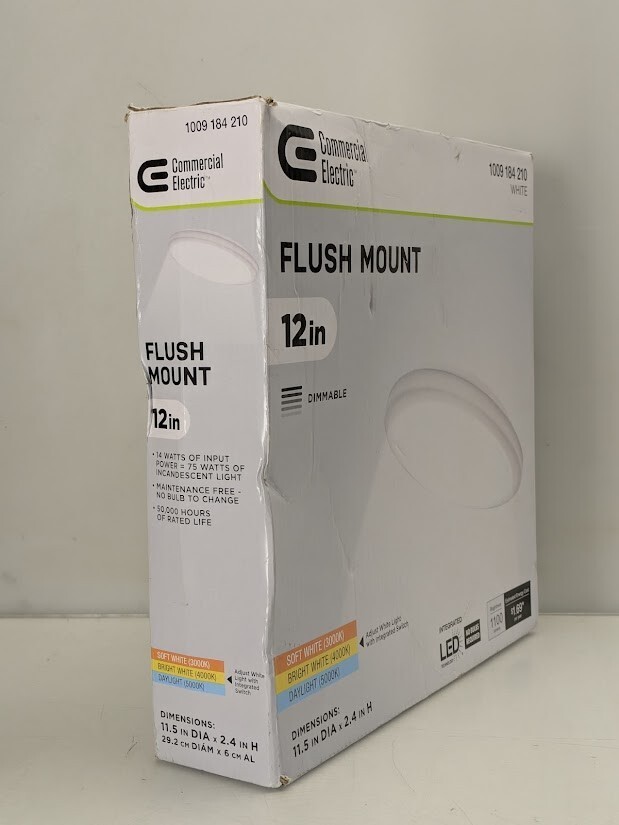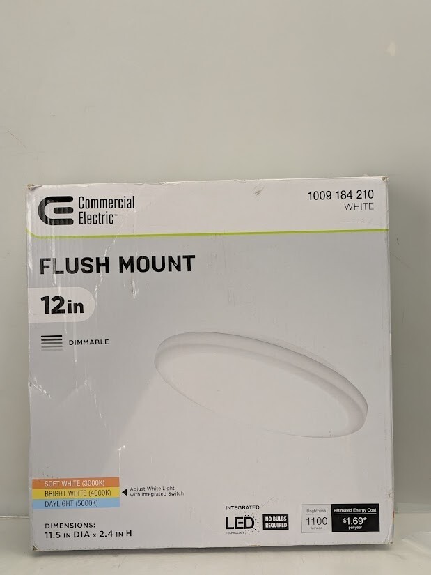 Brighten your home or office with Commercial Electric 12in. White Round LED Flush Mount Ceiling Light by replacing your outdated incandescent lights with an energy-efficient integrated LED fixture. With its low-profile design, this traditional ceiling light can be installed in spaces with low ceiling clearance and seamlessly flush into your ceiling aesthetic. Prior to installation, adjust the color temperature between Soft White, Bright White or Daylight depending on your needs and it is dimmable. While emitting 1100 Lumens of brightness, the smooth frosted lens produces crystal-clear even light distribution with no yellowing, discoloration, or dark spots over time. This flush mount offers a premium LED light engine ensuring maintenance free service with no bulbs to replace. Ideal for kitchen, laundry room, bathroom, bedroom, basement, office, corridors/hallways, and retail spaces and so much more.