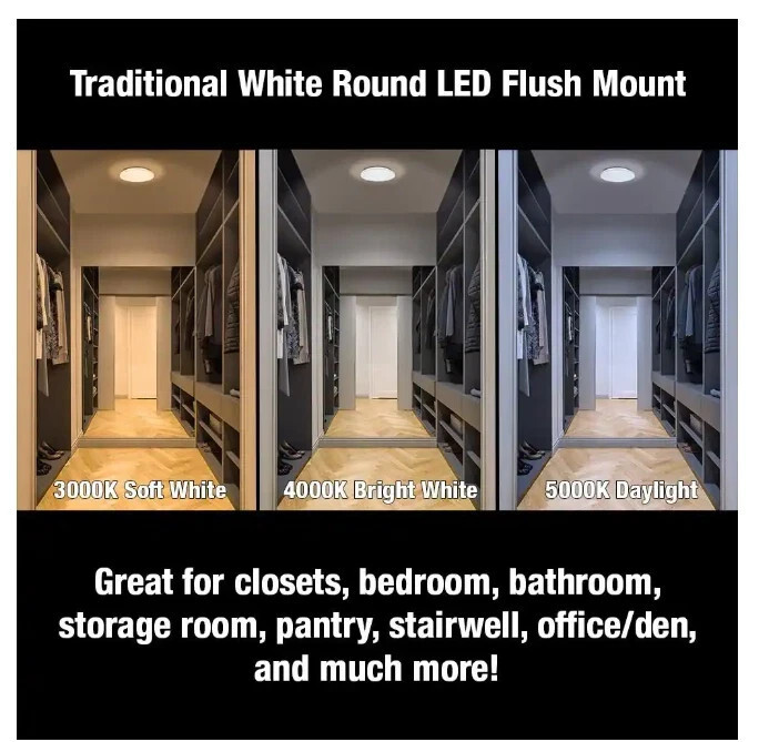 - Commercial Electric 12 in. Dimmable Round Closet LED Flush Mount Light Fixture