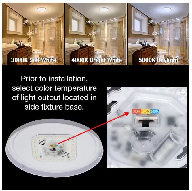 THREE COLOR TEMPERATURE OPTIONS: Soft White 3000K, Bright White 4000K, Daylight 5000K
