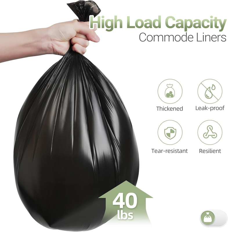 ?Leak Protection?: Bedside commode liners disposable act like attentive caretakers, safeguarding the hygiene around your commode toilet. Crafted from high-density polyethylene, they boast exceptional toughness, wear resistance, and impact resistance. Say goodbye to worries of accidental leaks, whether you're at home or out camping; our potty liners will steadfastly "guard" your sanitary space