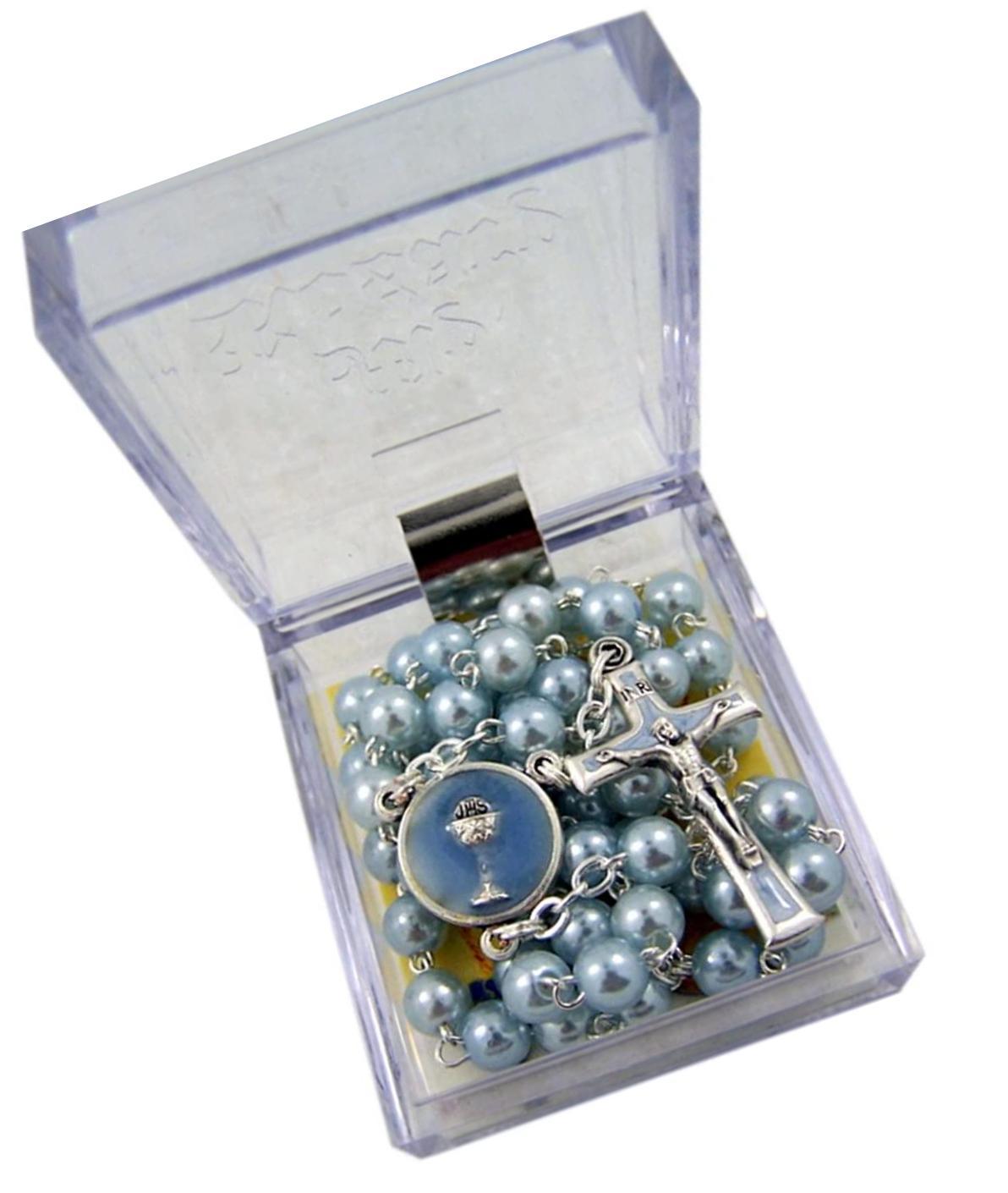 - Communion Acrylic Bead Rosary in Clear Keepsake Box,
