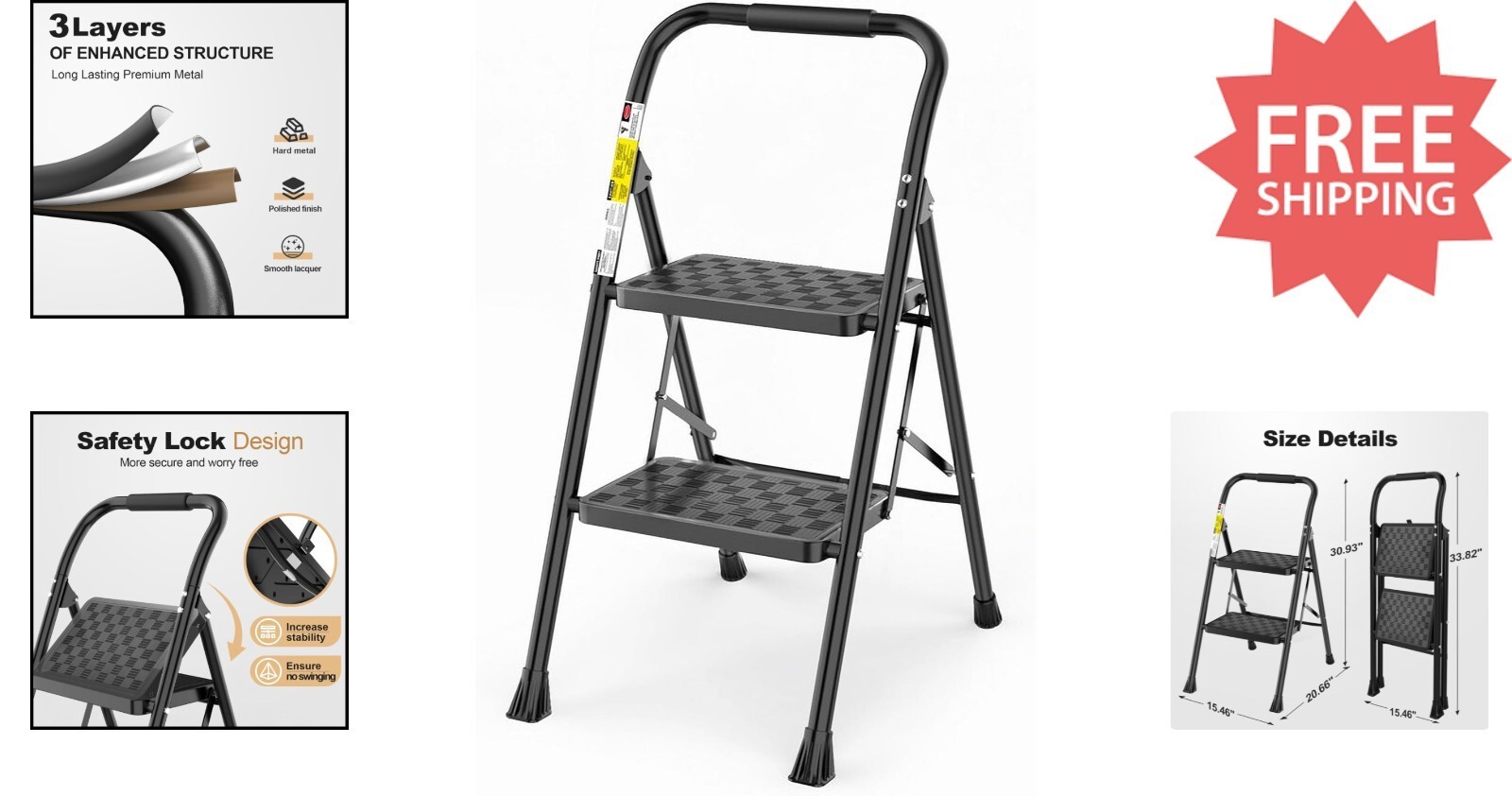 Discover the HBTower 2-Step Ladder ? the perfect blend of safety, functionality, and elegance. Featuring a lock-free design with a support rod for enhanced stability, simply push the top pedal to securely lock in place. Crafted from high-strength steel with slip-resistant mats, it offers reliable support for various tasks, from reaching high shelves to organizing your space. Equipped with a convenient sponge handle and foldable for easy storage, this versatile ladder doubles as a stylish plant stand and is suitable for multiple settings. TPR feet ensure smooth, noise-free operation and protect your floors. Elevate your home or workspace effortlessly with HBTower.