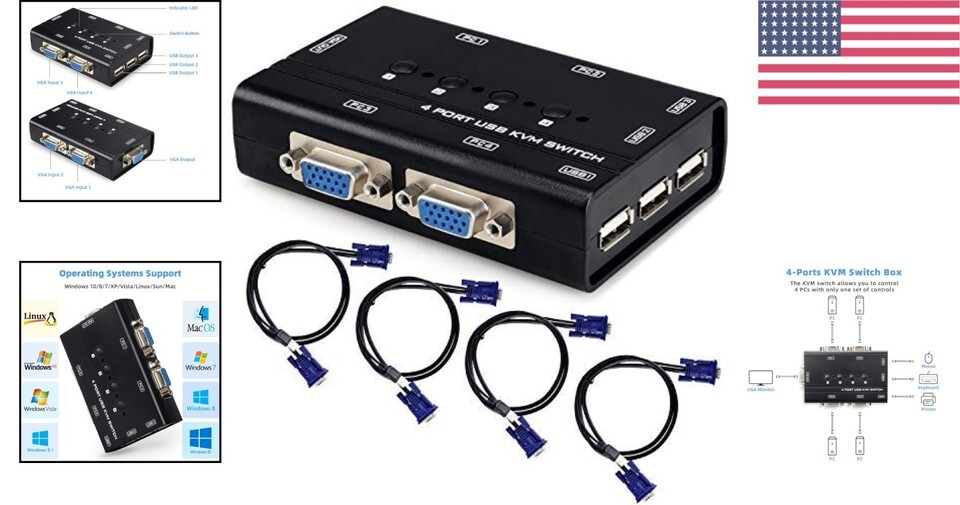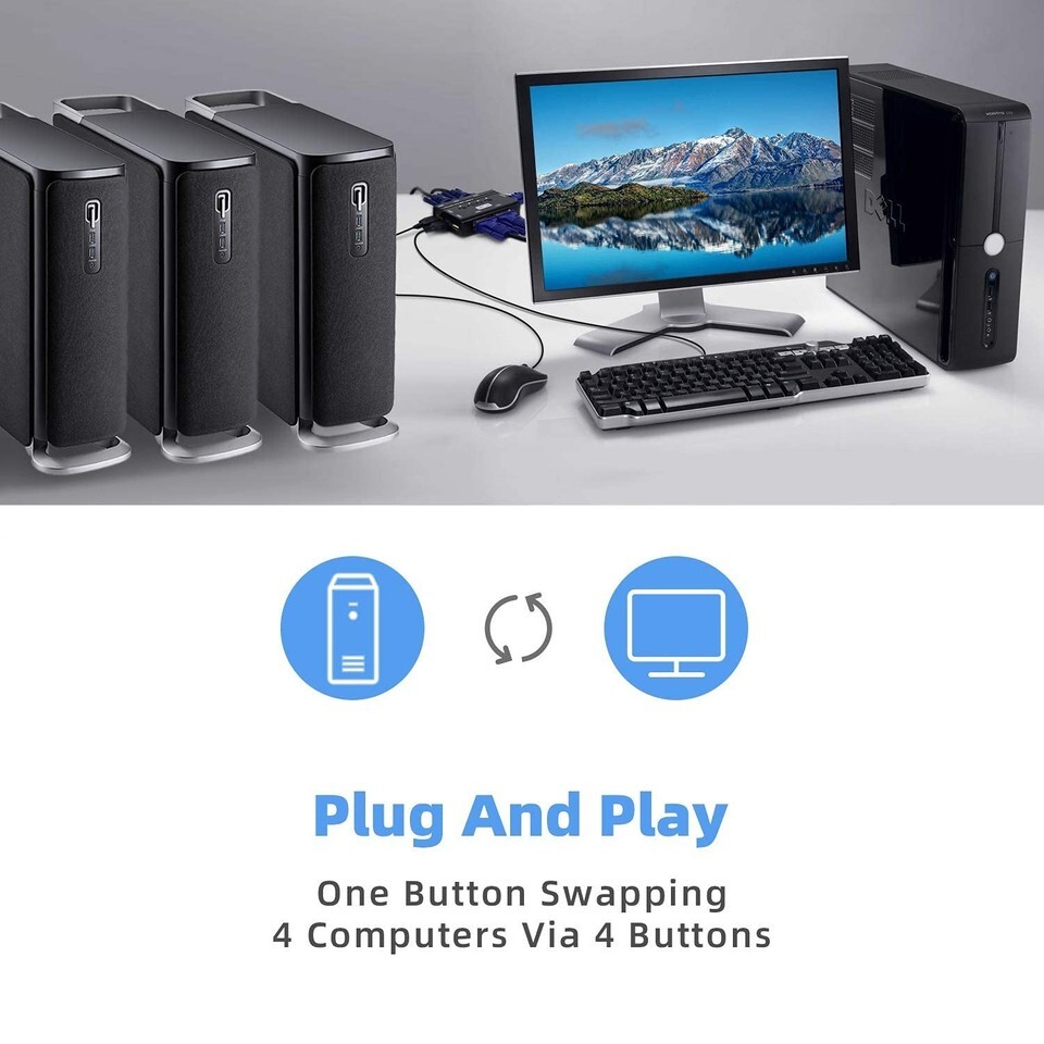 - Compact 4-Port USB VGA KVM Switch for High-Resolution Multimedia Experiences