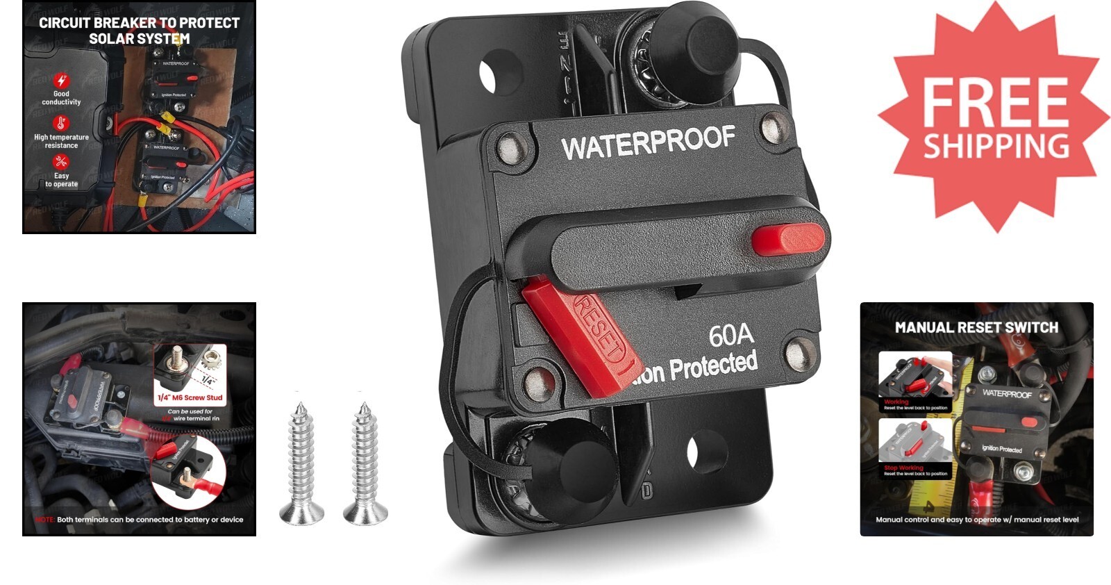 - Compact 60A Circuit Breaker for Boat, Trailer & RV - Reliable Battery Protection