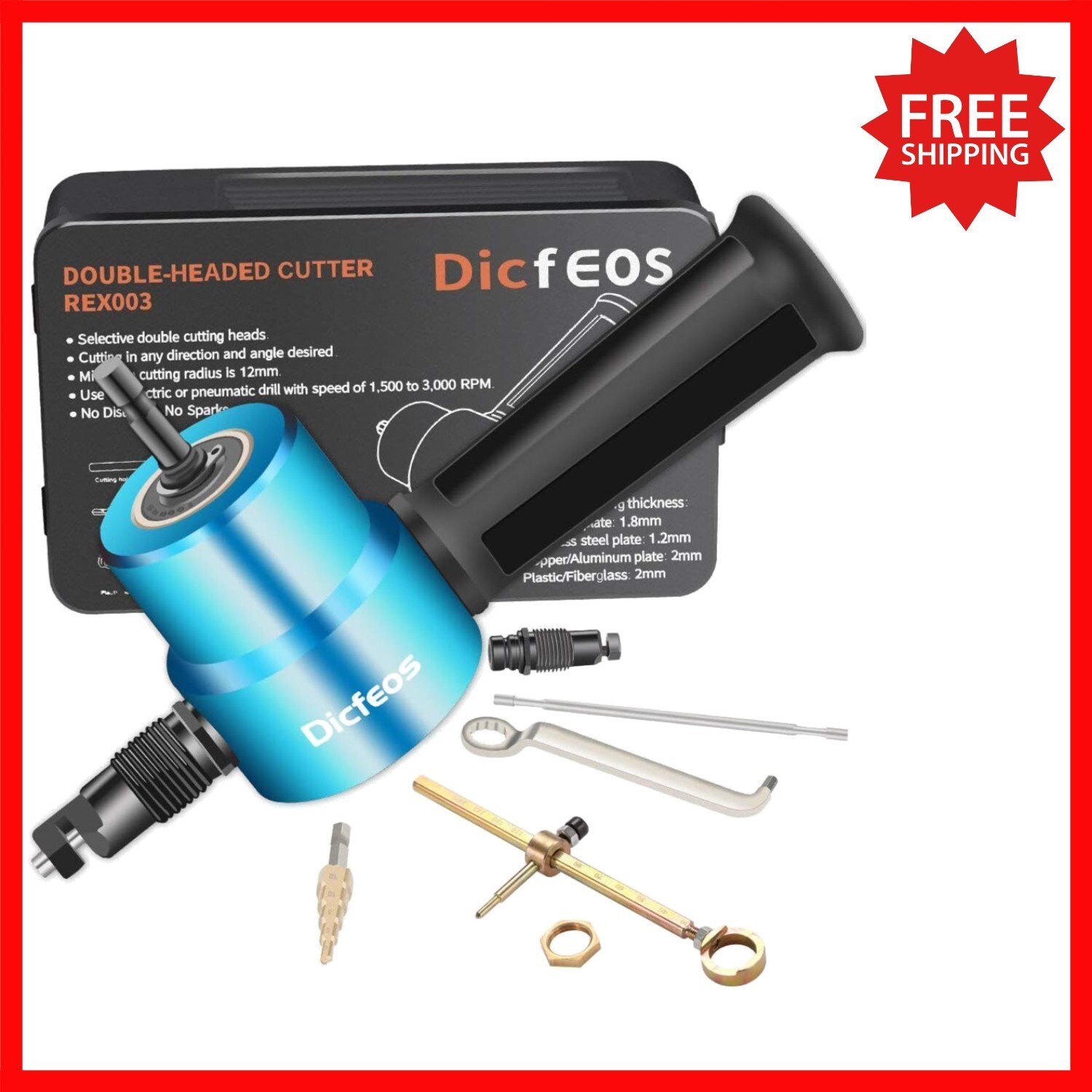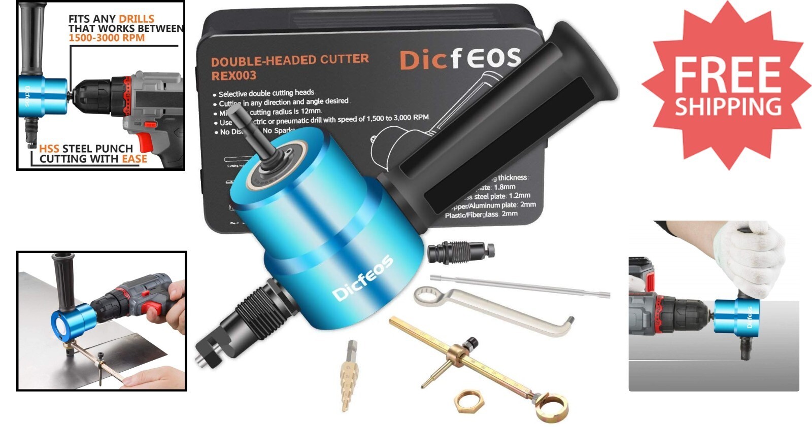 Upgrade your metalwork toolkit with the Dicfeos Double Head Metal Sheet Nibbler Cutter. Designed to effortlessly fit any standard drill, this versatile tool slices through materials up to 14 gauge steel (2mm thick), ensuring clean, burr-free edges across a wide range of applications. Perfect for sheet metal, pipes, complex profiles, and more, it allows for precise cuts in any direction ? from straight lines to intricate curves and profiles, including gutters, roof sections, and custom shapes. Its 360-degree movement provides unmatched flexibility and control. Complete with circle cutting accessories, a drill attachment, wrench, and spare parts, backed by a 2- . To ensure fast and reliable delivery, we work with multiple fulfillment partners and suppliers. Depending on availability and location, your order may ship from different warehouses or arrive in packaging that varies from item to item. Tracking details are typically provided shortly after shipment, and customer satisfaction remains our top priority. Please note that due to carrier policies and regional regulations, certain items may not be eligible for delivery to specific states or territories.