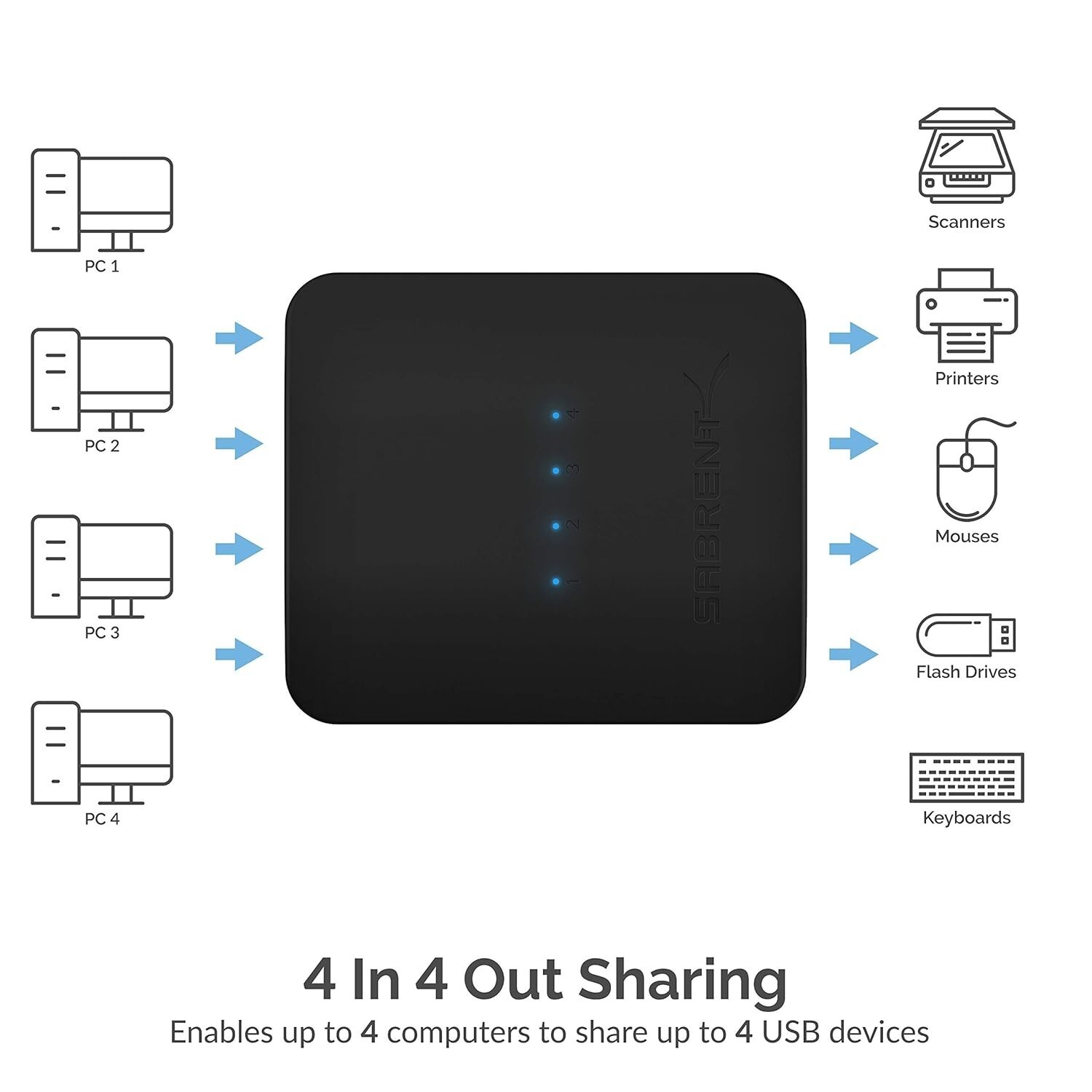 - Compact USB Sharing Switch Allows 4 PCs to Share USB Devices - Fast Transfer