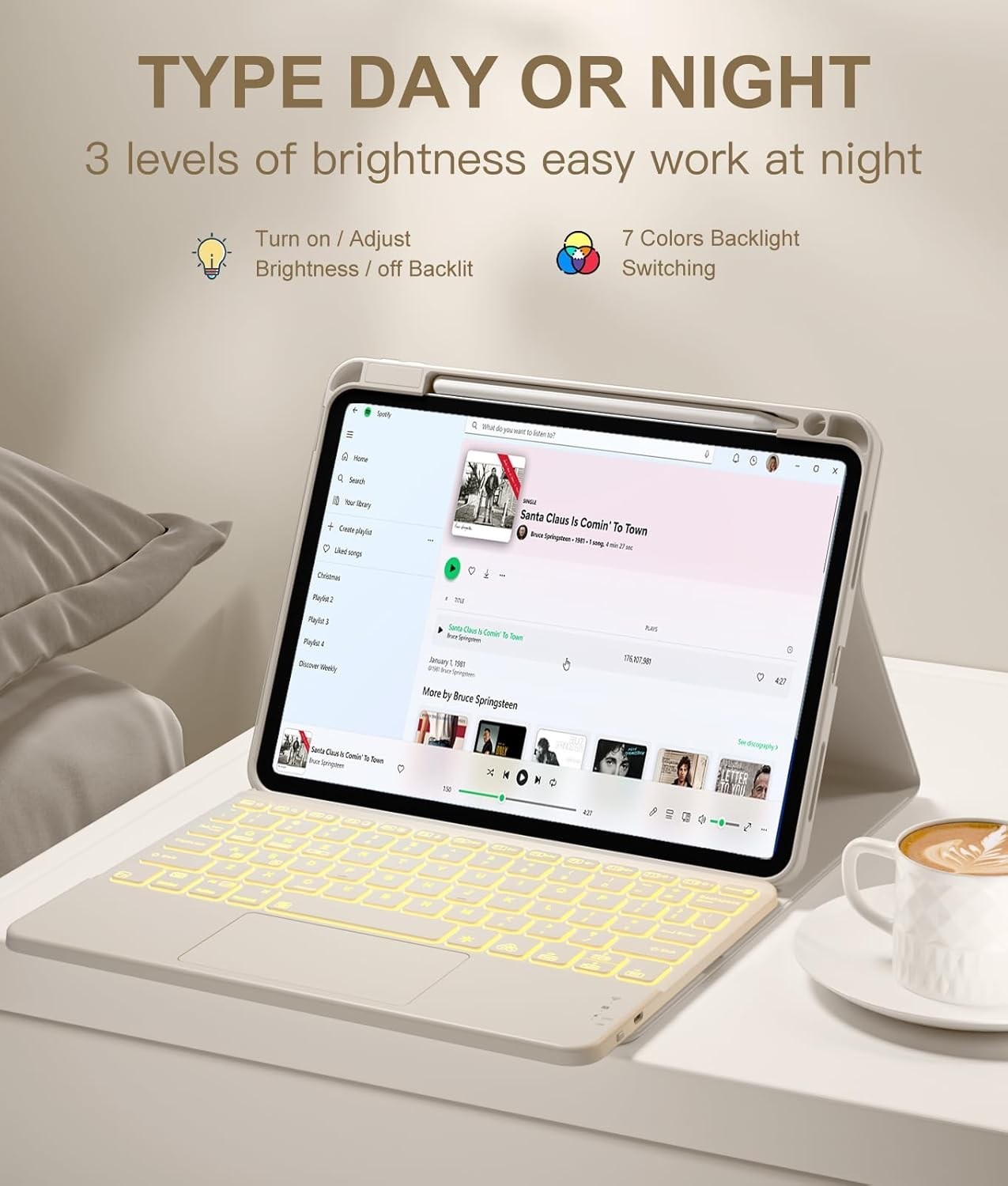 Harvopu Compatible with iPad Air 11 Inch Air 5th/ Air 4th Generation Case with Keyboard - Multi-Touch Trackpad, 7-Color Backlit, Detachable Folio Cover for Air 11-inch M3/M2 (2025/2024) (Starlight)