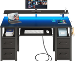 - Computer Desk 55.1" with LED Lights & Power Outlets, Home Office Des