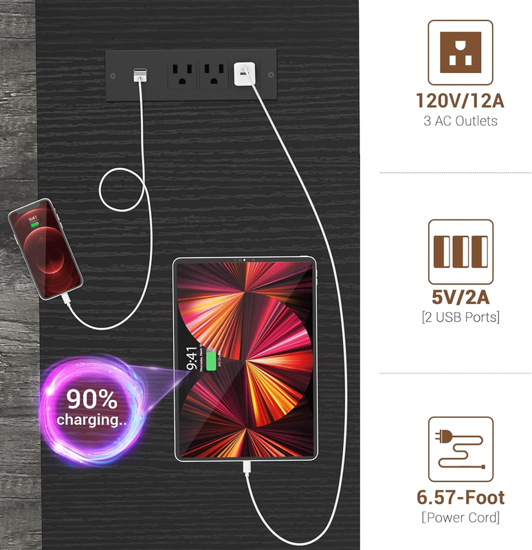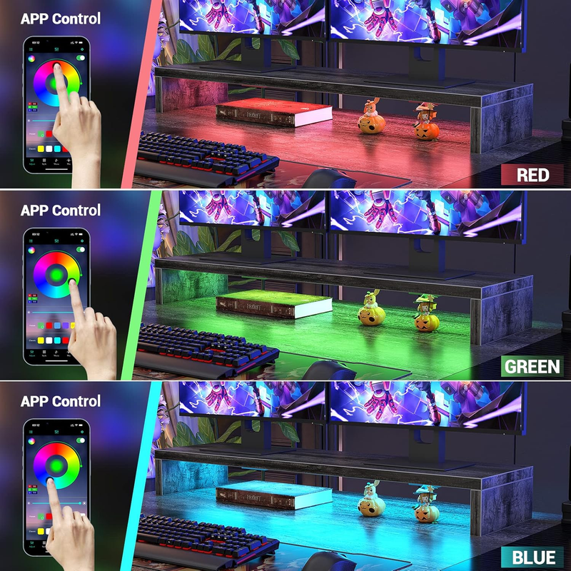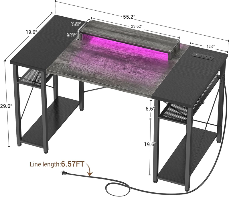 - Computer Desk with LED Lights, 55 Inch Desk with Power Outlet and USB,