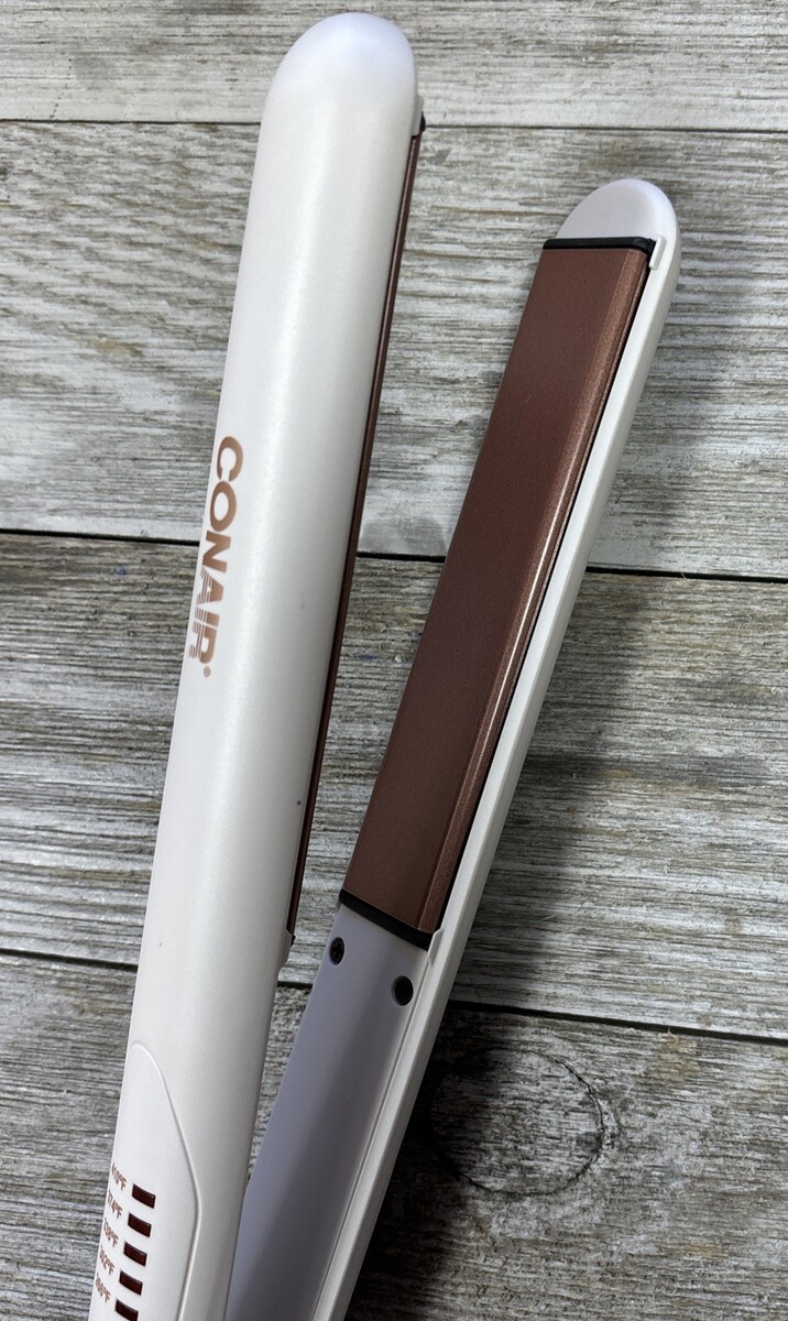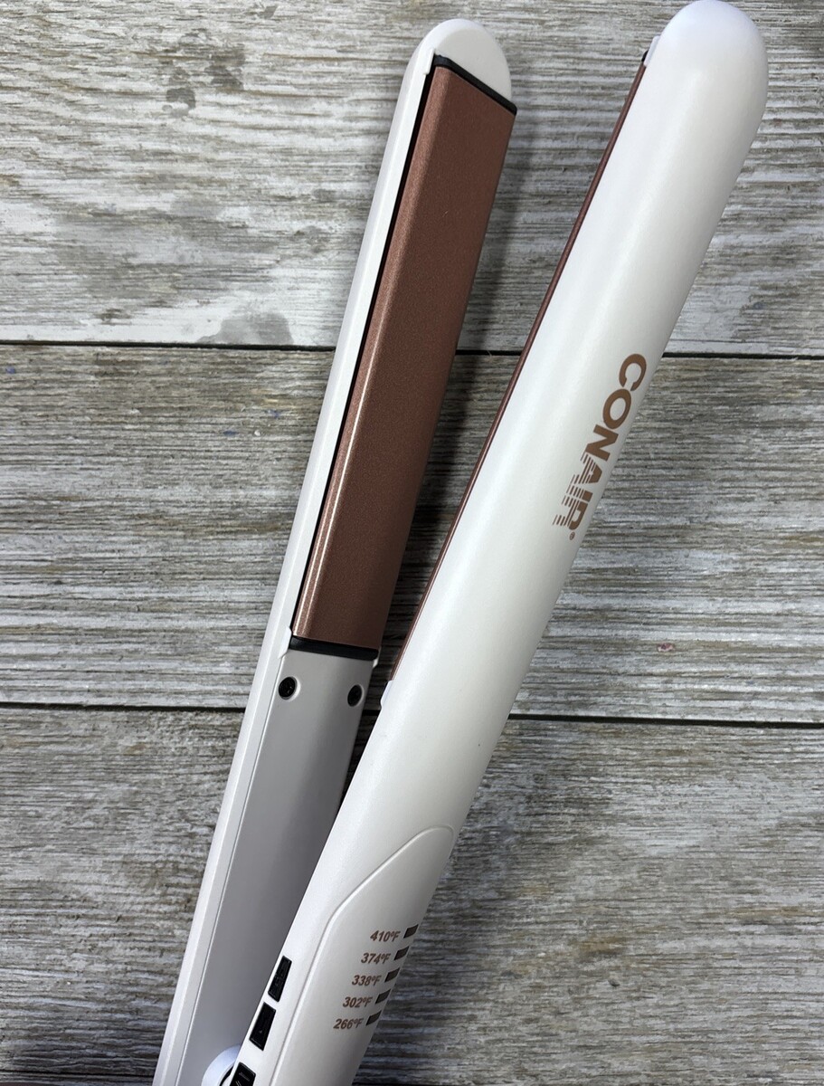 - Conair Double Ceramic Flat Iron,1 Inch Flat Iron,White/Rose Gold ~ Used