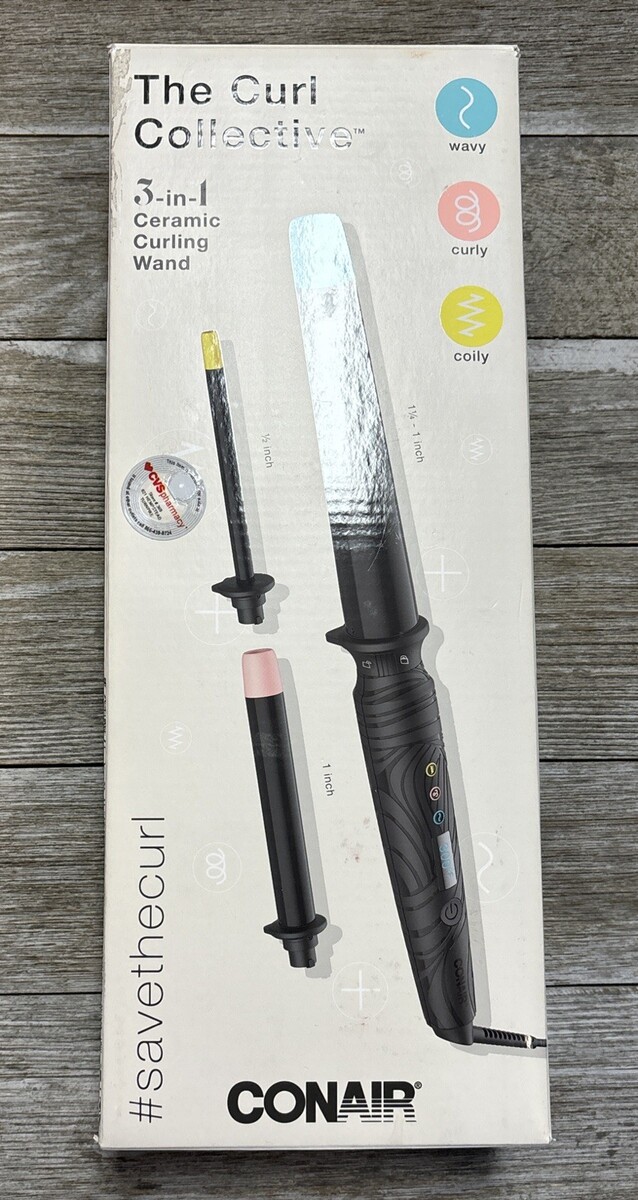 - Conair The Curl Collective 3 in 1 Ceramic Curling Wand, Black ~Pre-Owned