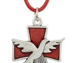 Confirmation Cross with Dove, Red 24" Cord Necklace, New #AB-297-R2
