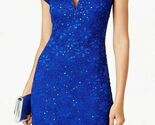 - Connected Apparel Gracie Cobalt Blue Stretch Sequin Lace Sheath Dress 6 Short
